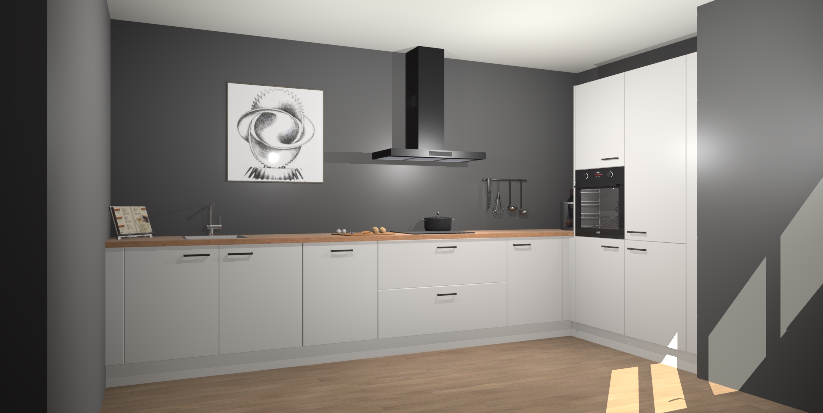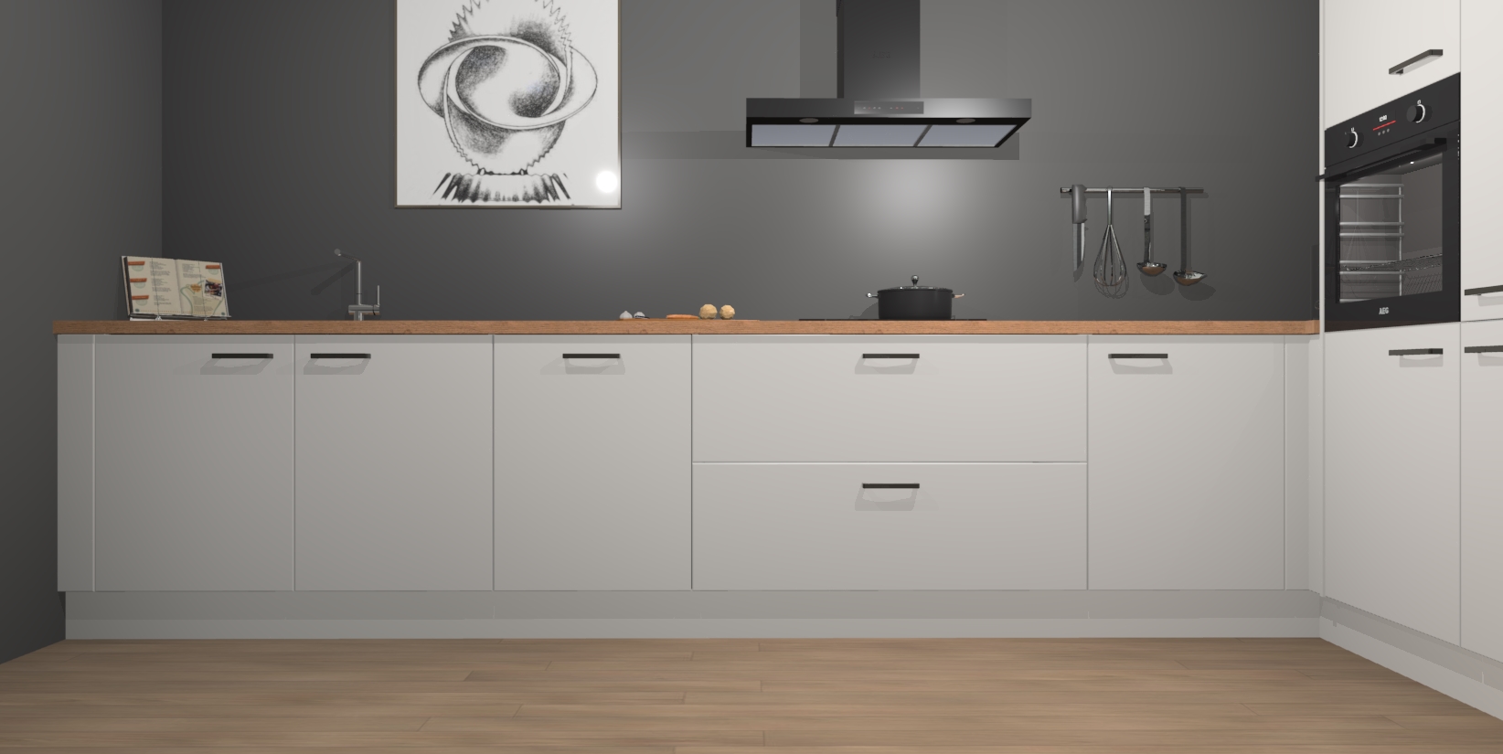 Welkom bij de Zijdegrijze keuken Khao Lak. Deze prachtige keuken zal de komende jaren het middelpunt van de belangstelling in uw huis zijn. Uitgerust met vijf inbouwapparaten komt u nooit kookgereedschap tekort. Bovendien geeft de warme houtlook elke ruimte een uitnodigende en tijdloze uitstraling.
