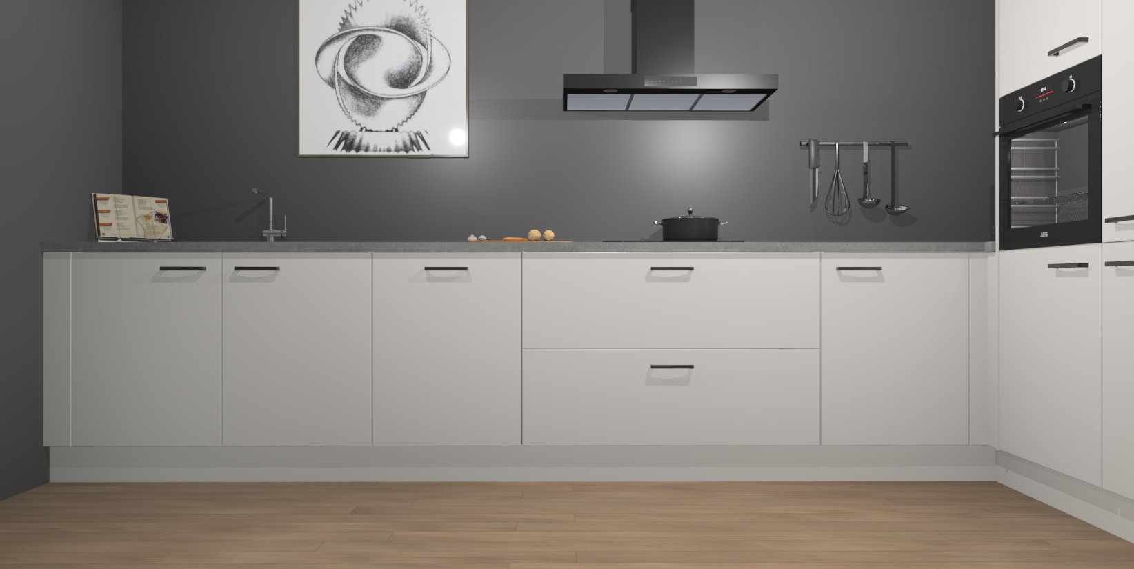 Inclusief plinten, stelpoten en werkblad