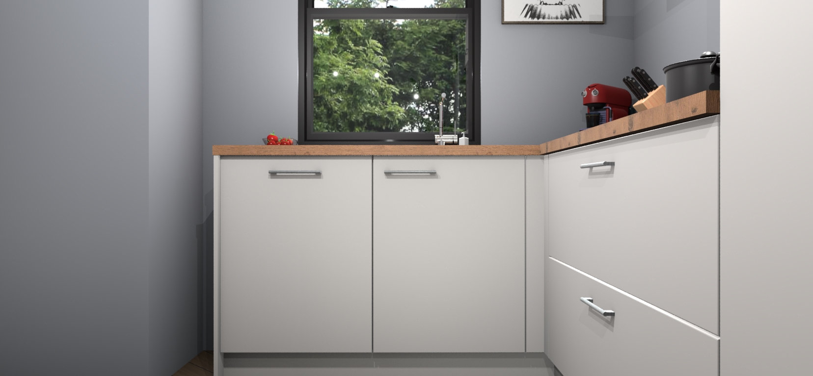 Moedige modernisten! De zijdegrijze keuken Kinshasa is het perfecte antwoord op al uw keukendromen. Dit geraffineerde, tijdloze ontwerp combineert strakke kasten met hoogglans details zodat u die dure look krijgt zonder het dure prijskaartje. We weten dat planning en uitvoering de sleutels zijn tot een geslaagde keukenrenovatie, dus hebben we ervoor gezorgd dat we vijf inbouwapparaten in ons pakket hebben: een oven, inductiekookplaat, afzuigkap, vaatwasser en koelkast. Deze kunnen na bestelling gemakkelijk worden uitgebreid voor nog meer gemak.