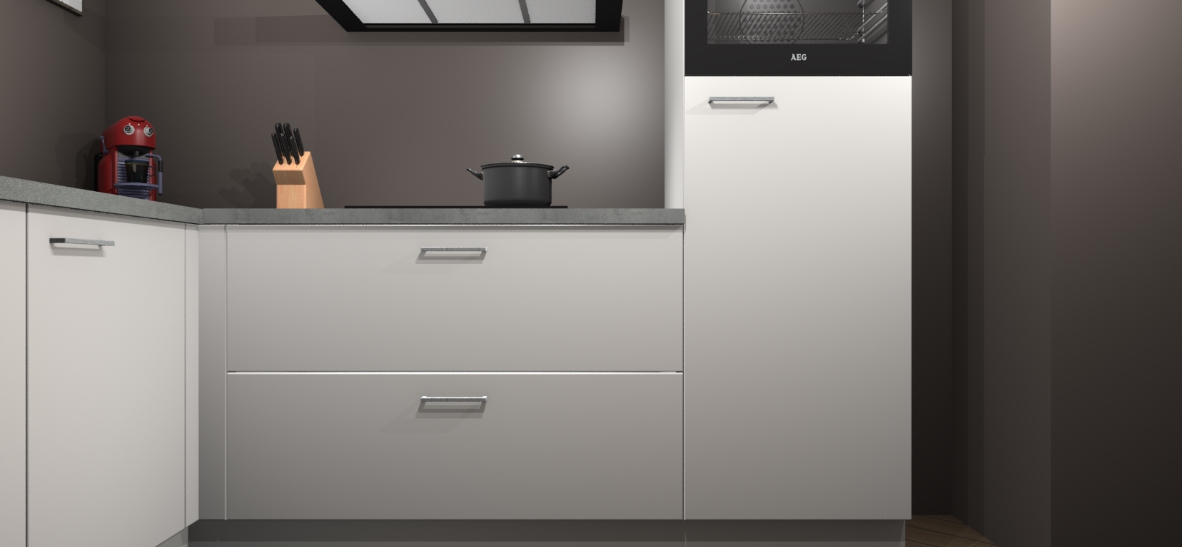 In deze box zijn alle kleuren verzameld van de deuren en werkbladen. Vraag de gratis kleurenbox aan en kijk thuis rustig verder!
