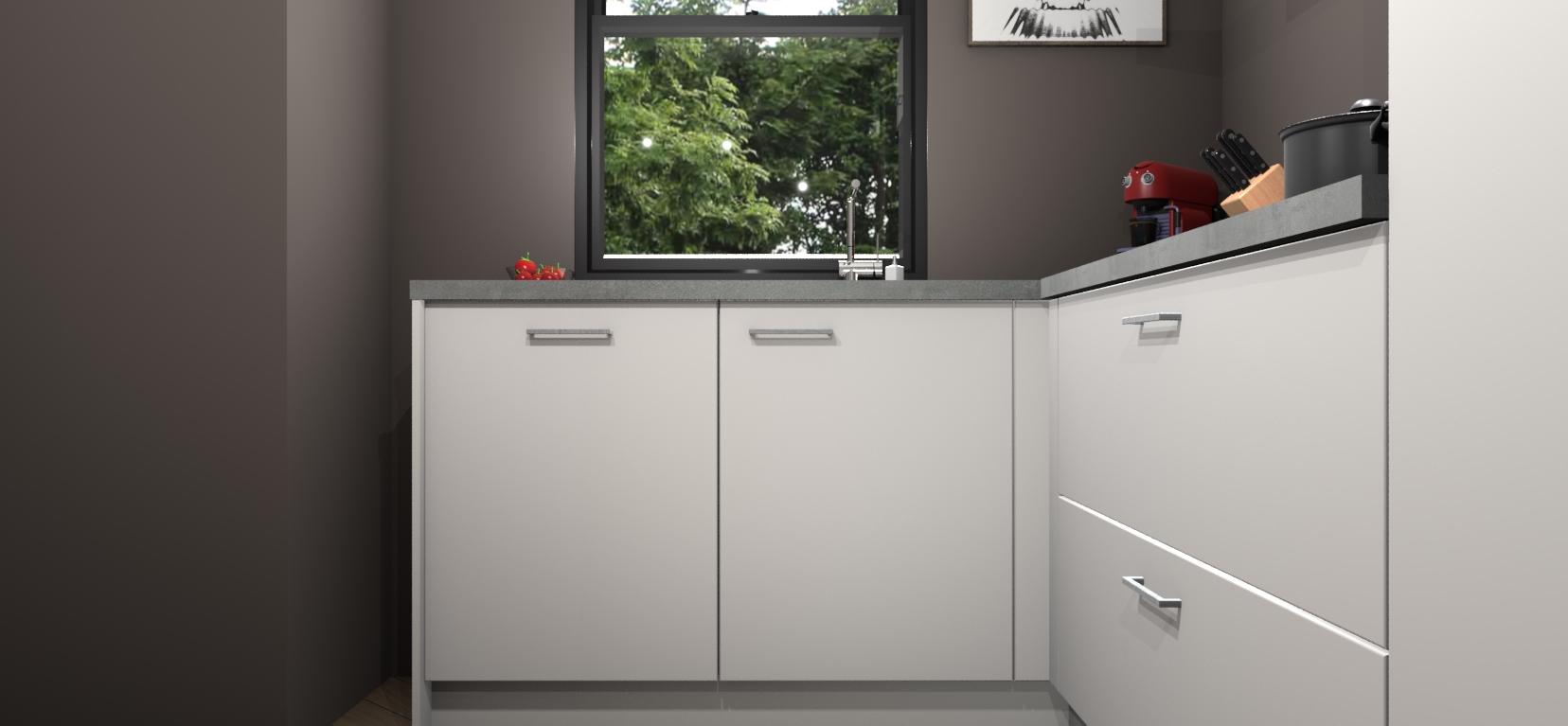 Moedige modernisten! De zijdegrijze keuken Kinshasa is het perfecte antwoord op al uw keukendromen. Dit geraffineerde, tijdloze ontwerp combineert strakke kasten met hoogglans details zodat u die dure look krijgt zonder het dure prijskaartje. We weten dat planning en uitvoering de sleutels zijn tot een geslaagde keukenrenovatie, dus hebben we ervoor gezorgd dat we vijf inbouwapparaten in ons pakket hebben: een oven, inductiekookplaat, afzuigkap, vaatwasser en koelkast. Deze kunnen na bestelling gemakkelijk worden uitgebreid voor nog meer gemak.