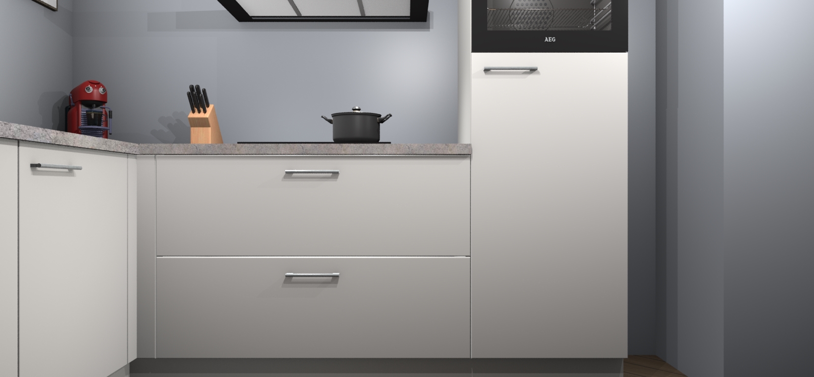 In deze box zijn alle kleuren verzameld van de deuren en werkbladen. Vraag de gratis kleurenbox aan en kijk thuis rustig verder!