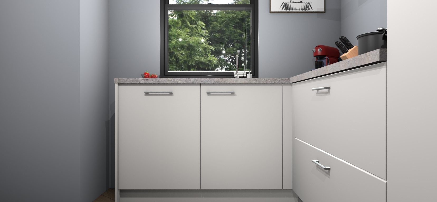 Moedige modernisten! De zijdegrijze keuken Kinshasa is het perfecte antwoord op al uw keukendromen. Dit geraffineerde, tijdloze ontwerp combineert strakke kasten met hoogglans details zodat u die dure look krijgt zonder het dure prijskaartje. We weten dat planning en uitvoering de sleutels zijn tot een geslaagde keukenrenovatie, dus hebben we ervoor gezorgd dat we vijf inbouwapparaten in ons pakket hebben: een oven, inductiekookplaat, afzuigkap, vaatwasser en koelkast. Deze kunnen na bestelling gemakkelijk worden uitgebreid voor nog meer gemak.