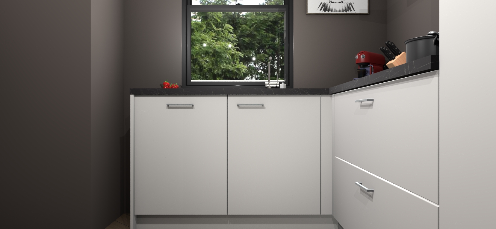 Moedige modernisten! De zijdegrijze keuken Kinshasa is het perfecte antwoord op al uw keukendromen. Dit geraffineerde, tijdloze ontwerp combineert strakke kasten met hoogglans details zodat u die dure look krijgt zonder het dure prijskaartje. We weten dat planning en uitvoering de sleutels zijn tot een geslaagde keukenrenovatie, dus hebben we ervoor gezorgd dat we vijf inbouwapparaten in ons pakket hebben: een oven, inductiekookplaat, afzuigkap, vaatwasser en koelkast. Deze kunnen na bestelling gemakkelijk worden uitgebreid voor nog meer gemak.