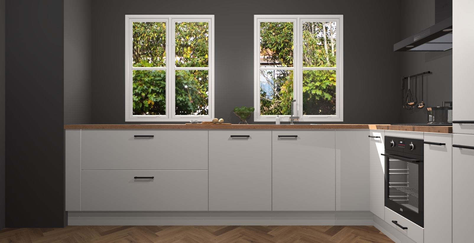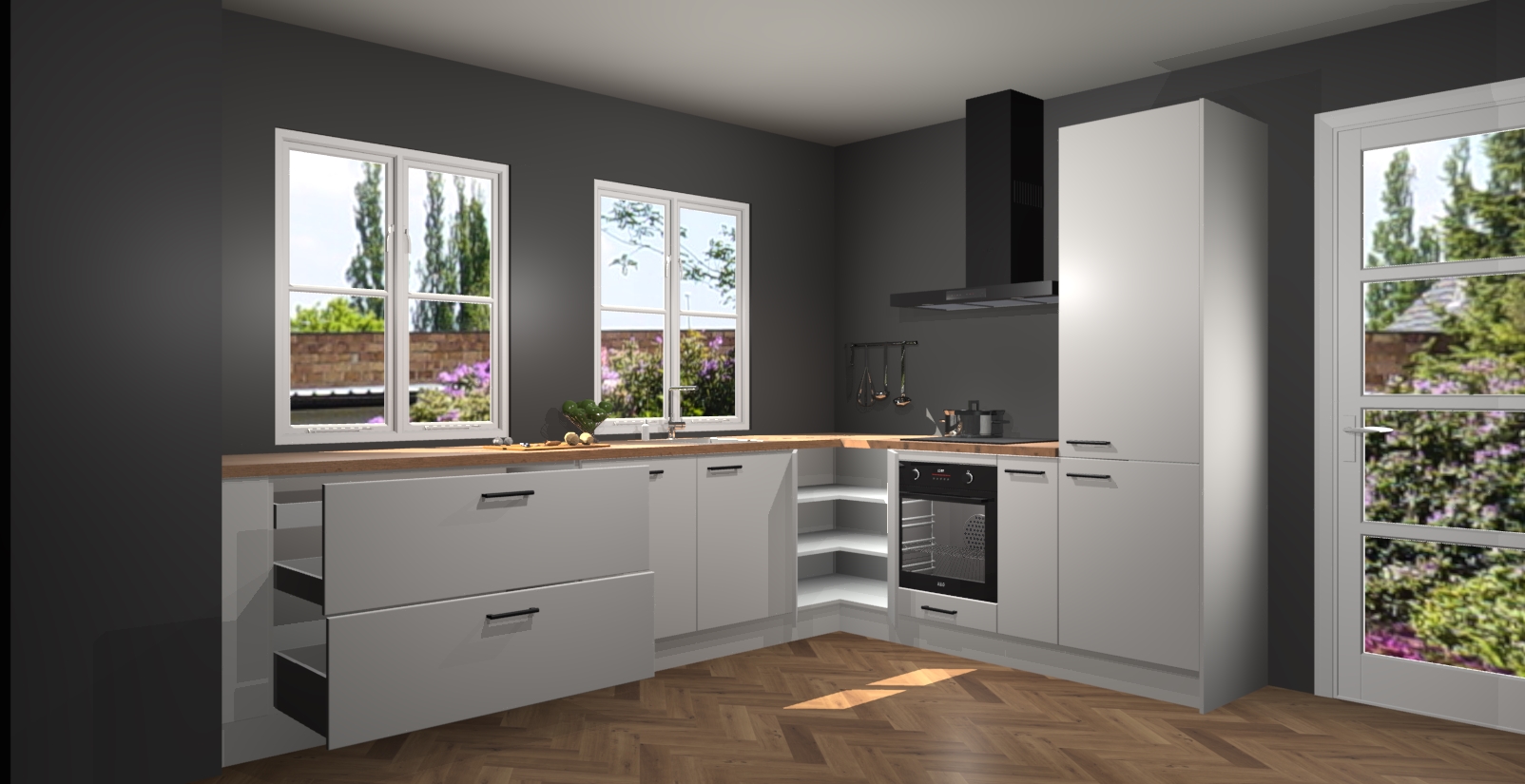 En dat is nog niet alles! U kunt bij uw bestelling ook uw keuken makkelijk upgraden naar AEG apparatuur. Alles wat u nodig heeft om te koken - meteen vanaf het begin! Met zo'n uitstekend pakket is het geen verrassing dat de Zijdegrijze keuken Konin een van onze populairste producten is!
