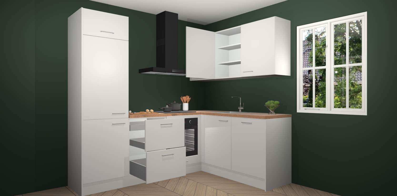 In deze box zijn alle kleuren verzameld van de deuren en werkbladen. Vraag de gratis kleurenbox aan en kijk thuis rustig verder!