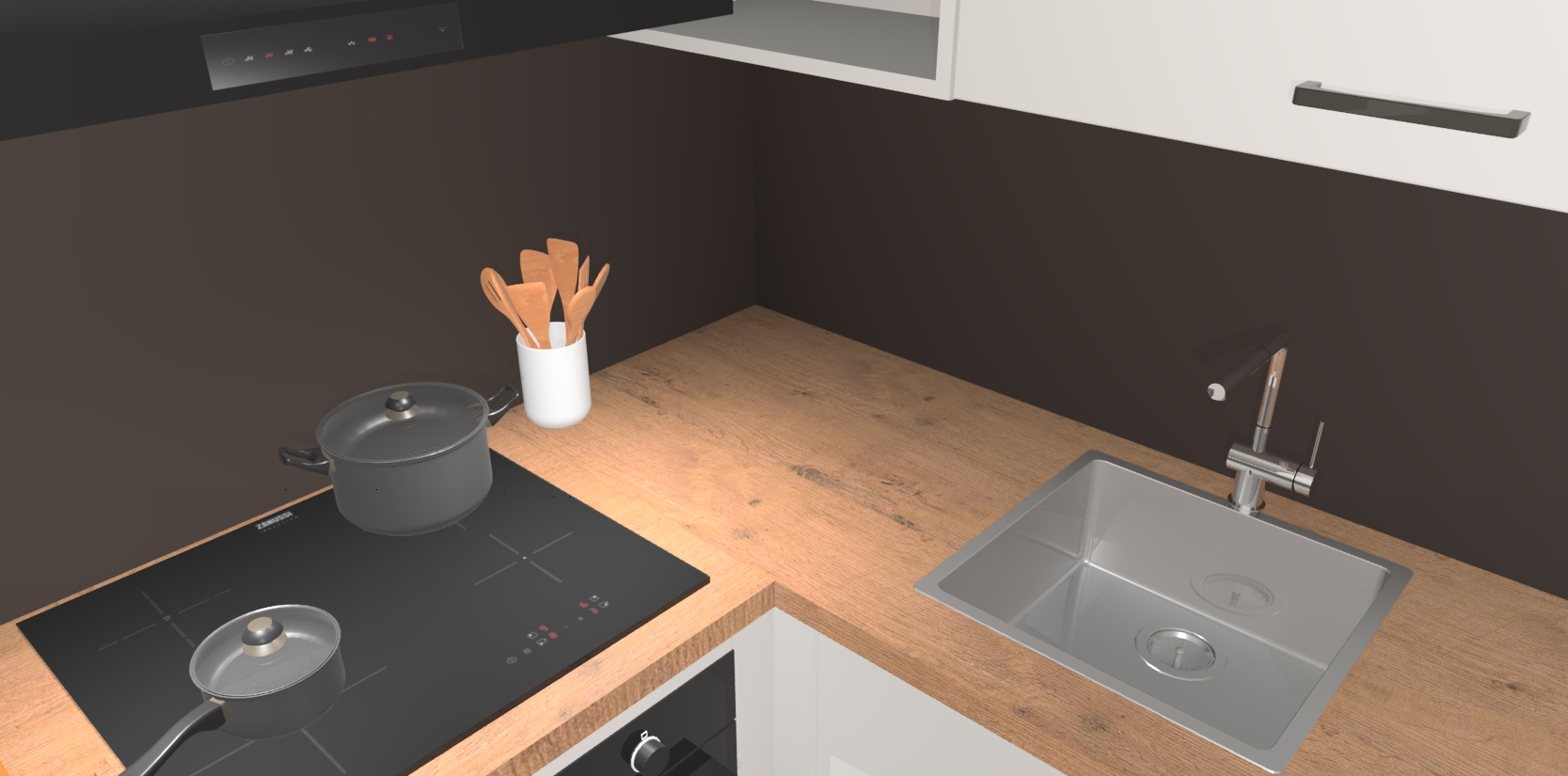 - Uitsparing van kookplaat, spoelbak en kraan dient u zelf te verzorgen.