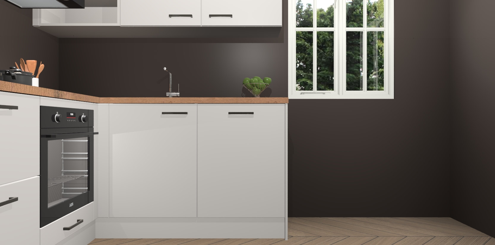 Dit model biedt u voldoende opbergruimte en vijf ingebouwde apparaten: een oven, inductiekookplaat, afzuigkap, vaatwasser en koelkast. Deze apparaten kunnen gemakkelijk worden geüpgrade naar AEG nadat u besteld heeft. De verschillende laden en kastjes bevatten softclose-deuren waardoor ze gezellig dichtvallen met een geruststellend helemaal geruisloos geluid. En dat is nog niet alles! We garanderen ook dat de prijs altijd laag blijft - dus haal nu uw Zijdegrijze keuken Krakau terwijl het kan.