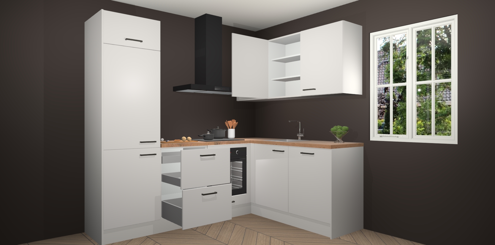 Inclusief plinten, stelpoten en werkblad