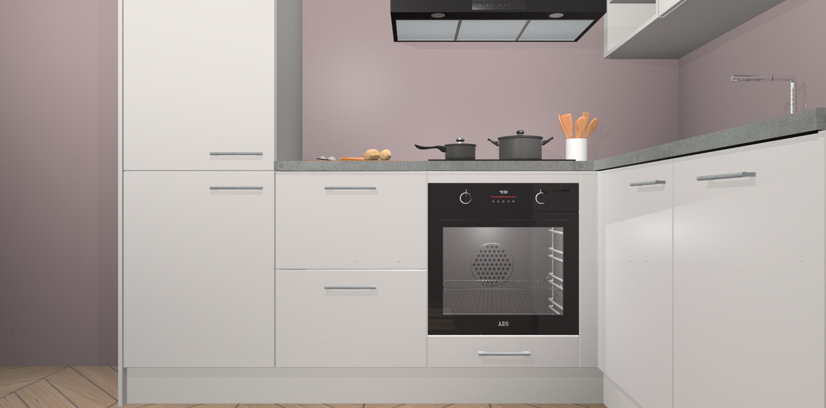 Dit model biedt u voldoende opbergruimte en vijf ingebouwde apparaten: een oven, inductiekookplaat, afzuigkap, vaatwasser en koelkast. Deze apparaten kunnen gemakkelijk worden geüpgrade naar AEG nadat u besteld heeft. De verschillende laden en kastjes bevatten softclose-deuren waardoor ze gezellig dichtvallen met een geruststellend helemaal geruisloos geluid. En dat is nog niet alles! We garanderen ook dat de prijs altijd laag blijft - dus haal nu uw Zijdegrijze keuken Krakau terwijl het kan.