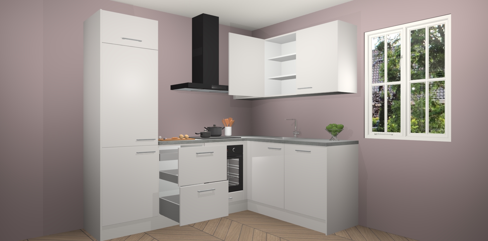 Inclusief plinten, stelpoten en werkblad
