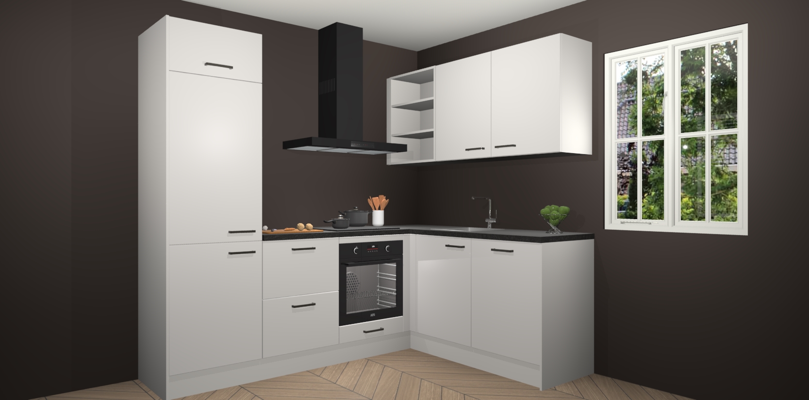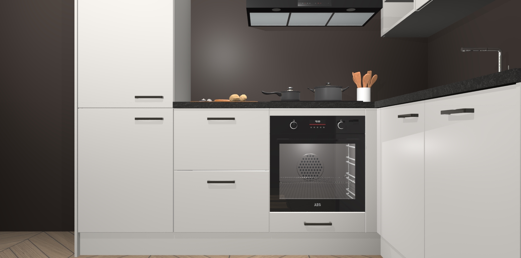 Dit model biedt u voldoende opbergruimte en vijf ingebouwde apparaten: een oven, inductiekookplaat, afzuigkap, vaatwasser en koelkast. Deze apparaten kunnen gemakkelijk worden geüpgrade naar AEG nadat u besteld heeft. De verschillende laden en kastjes bevatten softclose-deuren waardoor ze gezellig dichtvallen met een geruststellend helemaal geruisloos geluid. En dat is nog niet alles! We garanderen ook dat de prijs altijd laag blijft - dus haal nu uw Zijdegrijze keuken Krakau terwijl het kan.