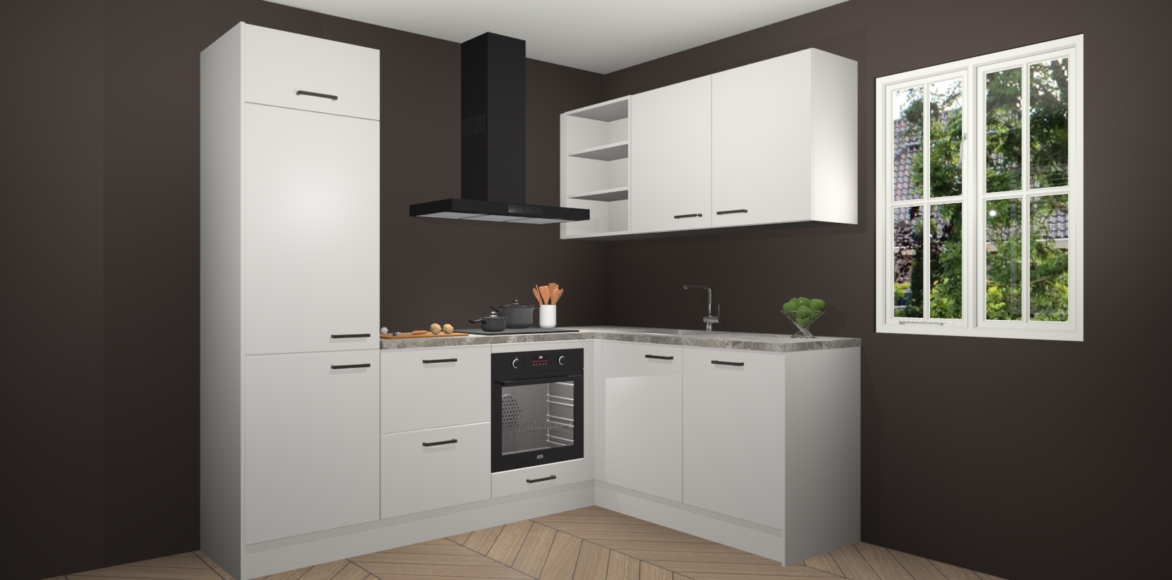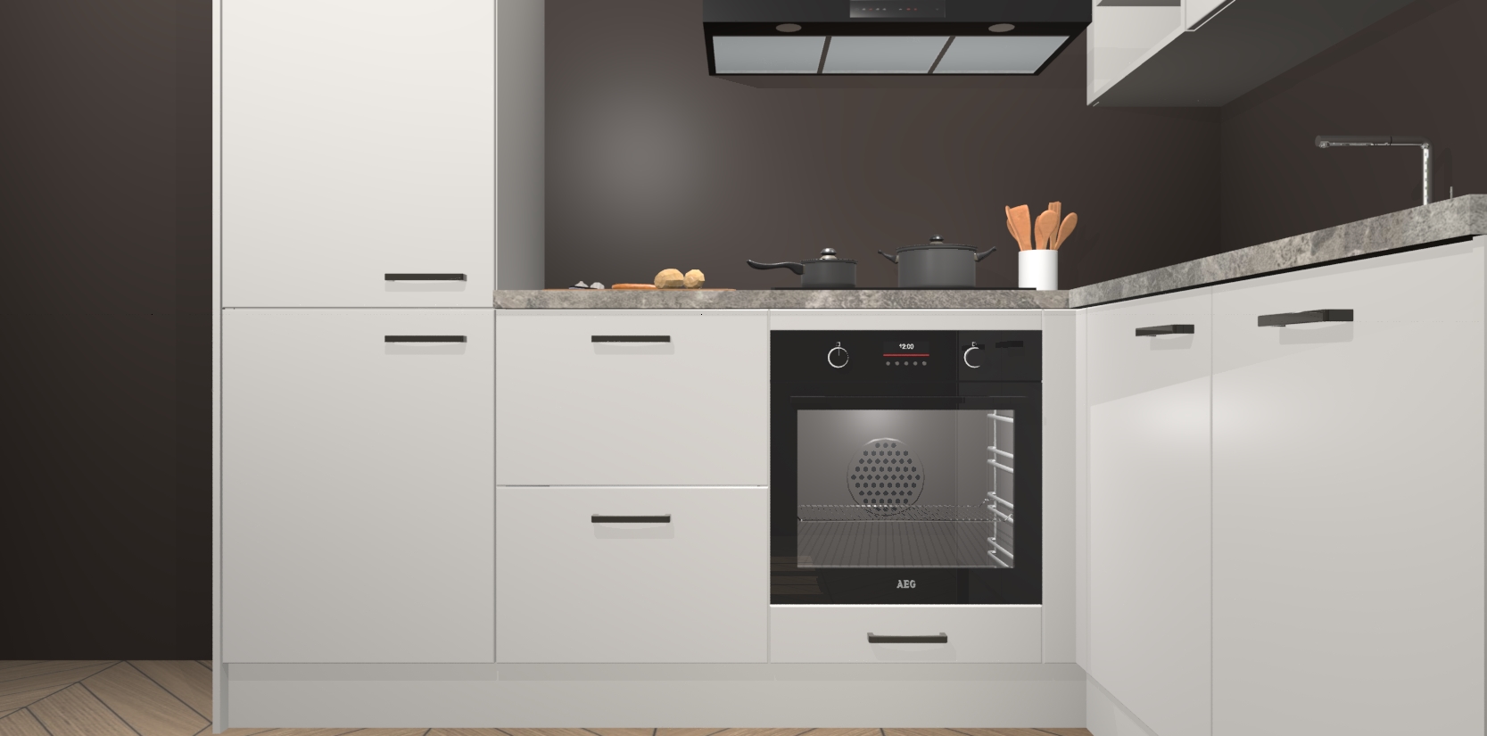 Dit model biedt u voldoende opbergruimte en vijf ingebouwde apparaten: een oven, inductiekookplaat, afzuigkap, vaatwasser en koelkast. Deze apparaten kunnen gemakkelijk worden geüpgrade naar AEG nadat u besteld heeft. De verschillende laden en kastjes bevatten softclose-deuren waardoor ze gezellig dichtvallen met een geruststellend helemaal geruisloos geluid. En dat is nog niet alles! We garanderen ook dat de prijs altijd laag blijft - dus haal nu uw Zijdegrijze keuken Krakau terwijl het kan.