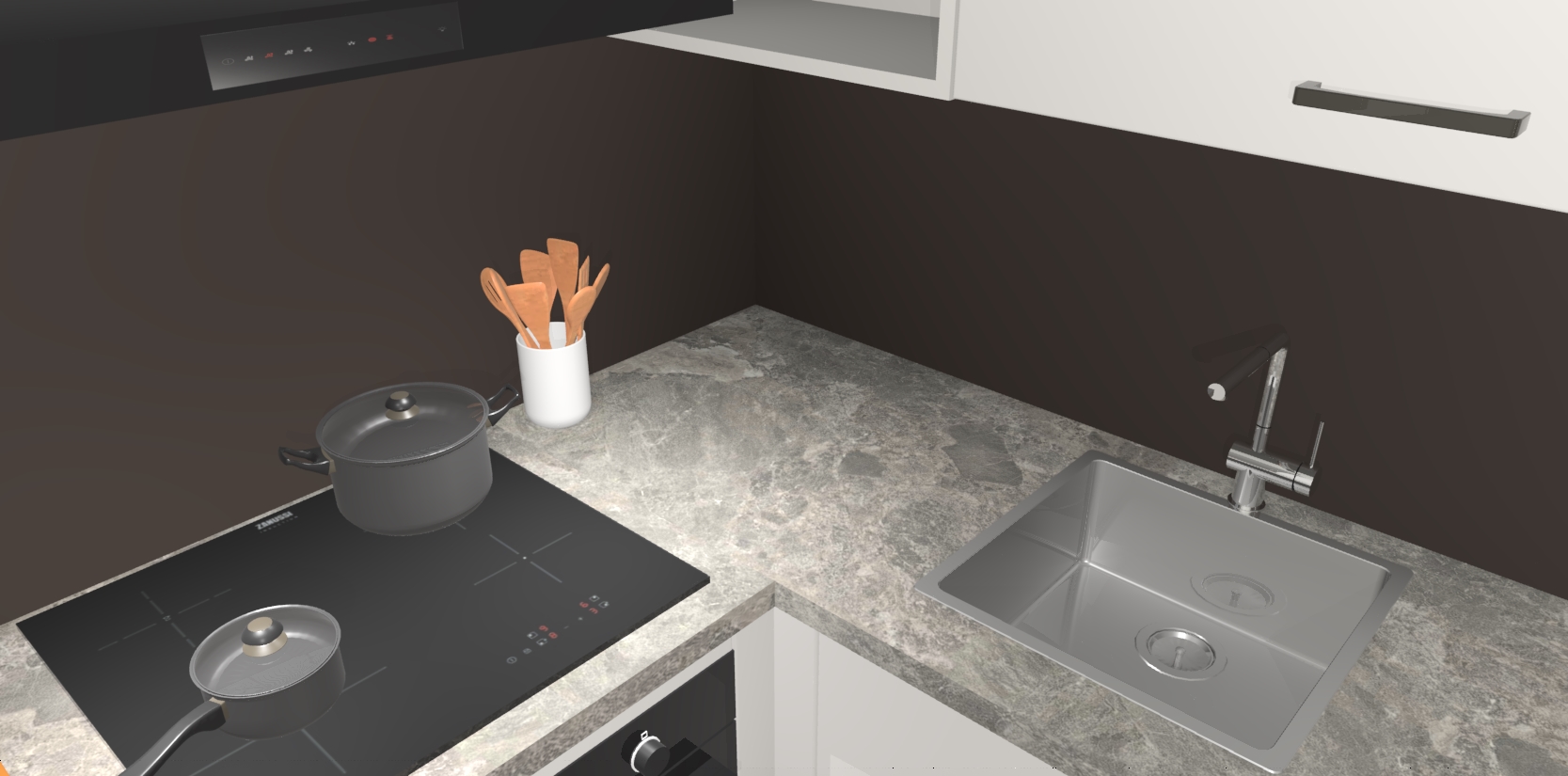 - Uitsparing van kookplaat, spoelbak en kraan dient u zelf te verzorgen.