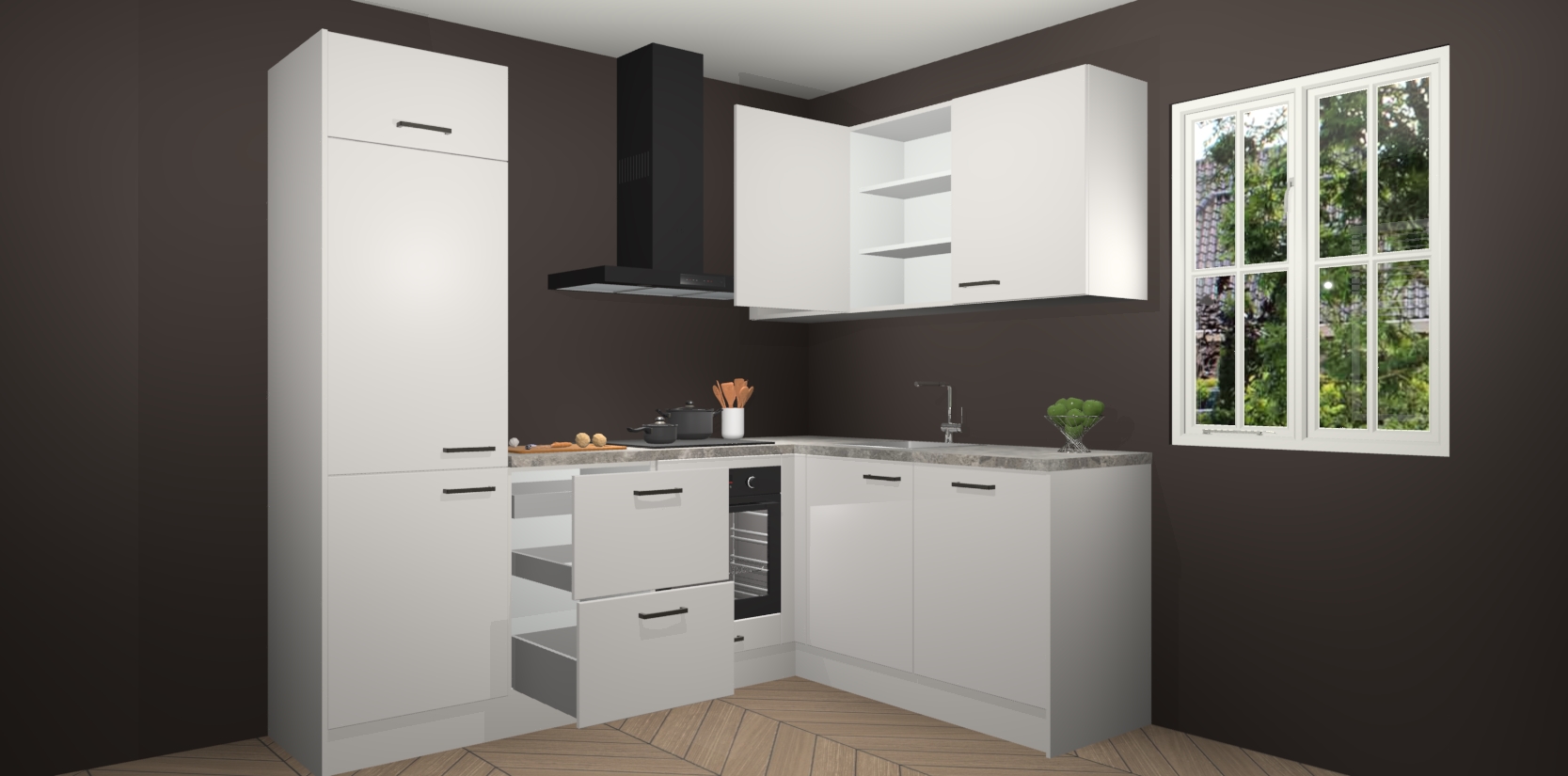 Inclusief plinten, stelpoten en werkblad