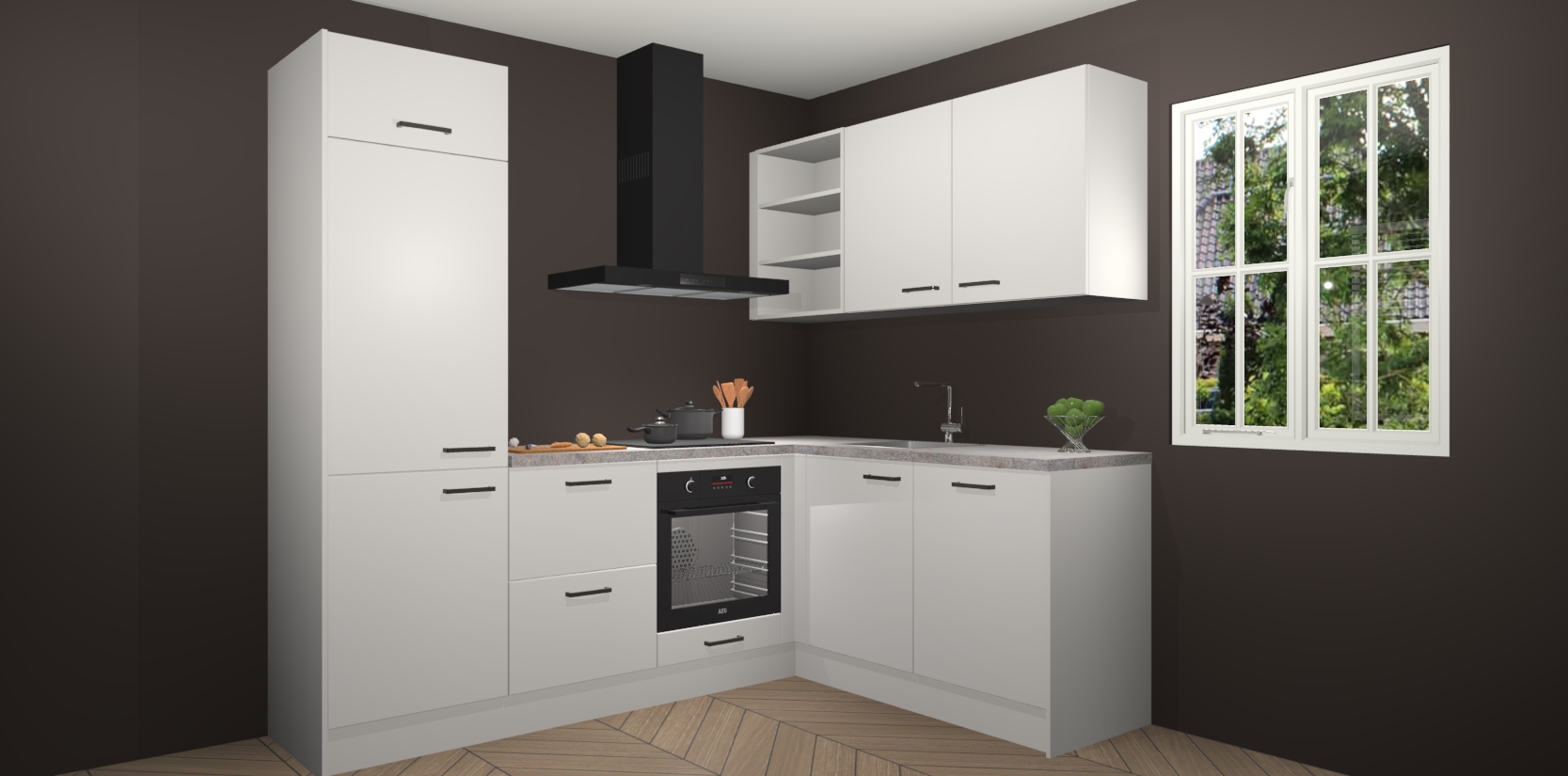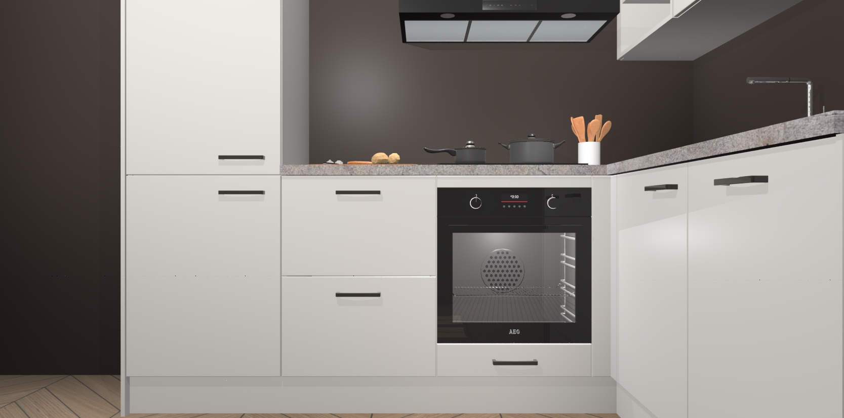 Dit model biedt u voldoende opbergruimte en vijf ingebouwde apparaten: een oven, inductiekookplaat, afzuigkap, vaatwasser en koelkast. Deze apparaten kunnen gemakkelijk worden geüpgrade naar AEG nadat u besteld heeft. De verschillende laden en kastjes bevatten softclose-deuren waardoor ze gezellig dichtvallen met een geruststellend helemaal geruisloos geluid. En dat is nog niet alles! We garanderen ook dat de prijs altijd laag blijft - dus haal nu uw Zijdegrijze keuken Krakau terwijl het kan.