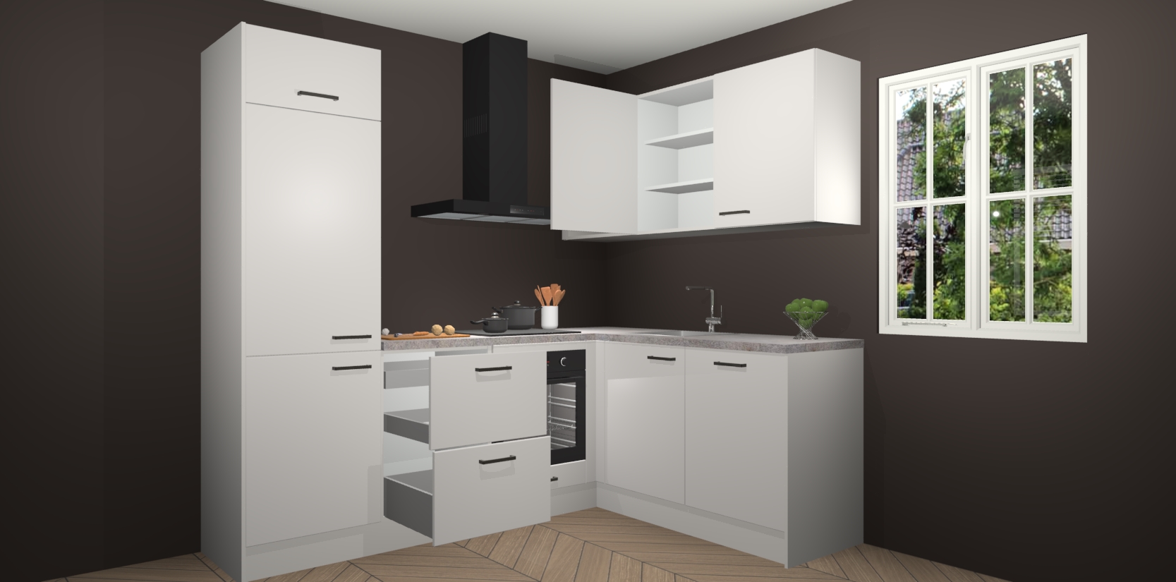 Inclusief plinten, stelpoten en werkblad
