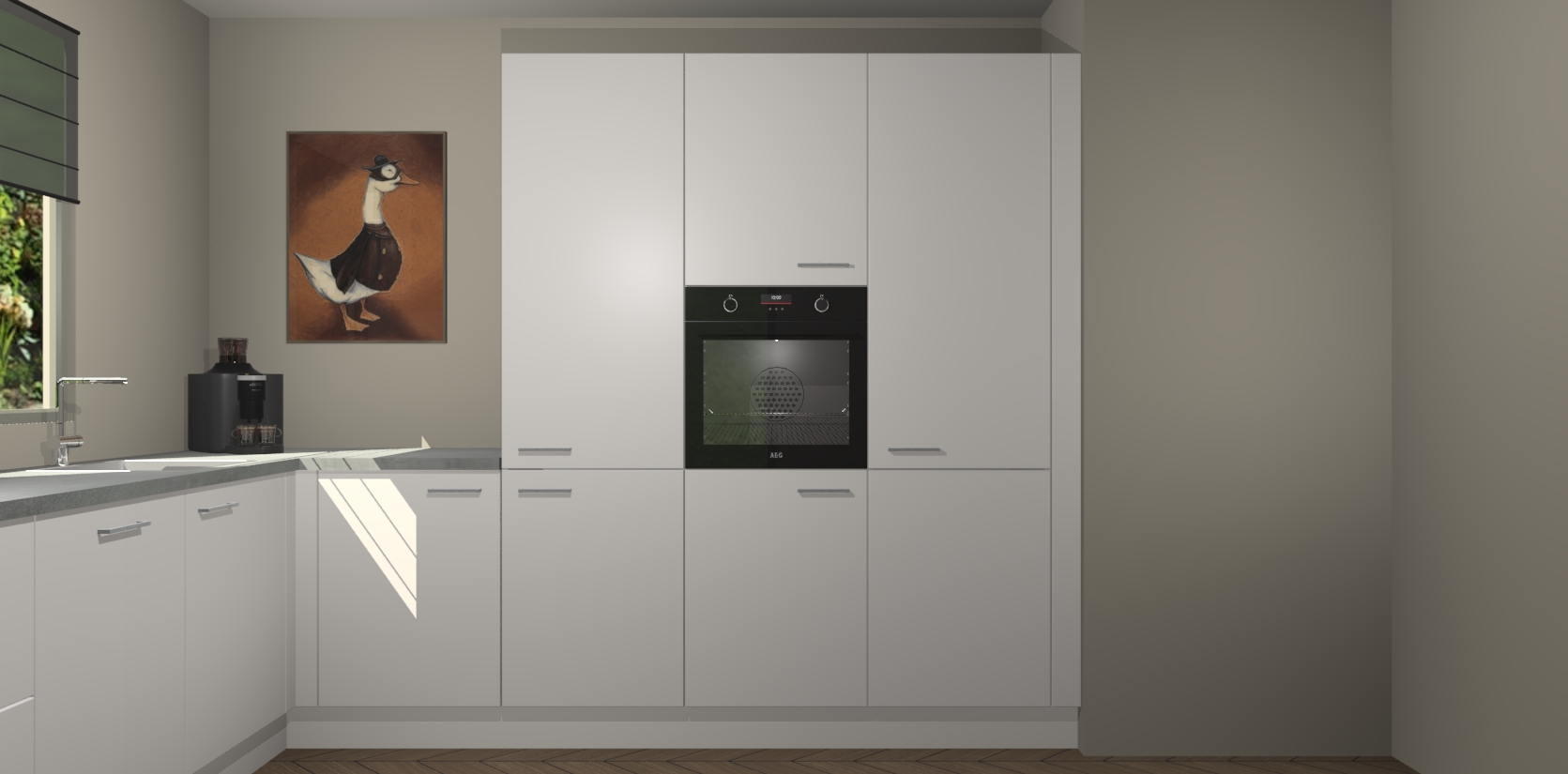 Welkom bij de Zijdegrijze keuken Laos. Deze prachtige keuken zal de komende jaren het middelpunt van de belangstelling in uw huis zijn. Uitgerust met vijf inbouwapparaten komt u nooit kookgereedschap tekort. Bovendien geeft de warme houtlook elke ruimte een uitnodigende en tijdloze uitstraling.
