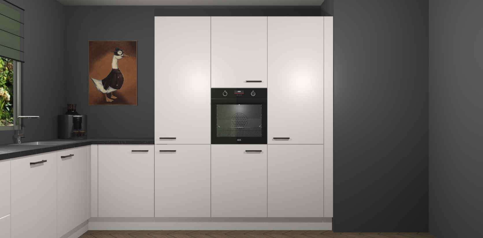 Welkom bij de Zijdegrijze keuken Laos. Deze prachtige keuken zal de komende jaren het middelpunt van de belangstelling in uw huis zijn. Uitgerust met vijf inbouwapparaten komt u nooit kookgereedschap tekort. Bovendien geeft de warme houtlook elke ruimte een uitnodigende en tijdloze uitstraling.