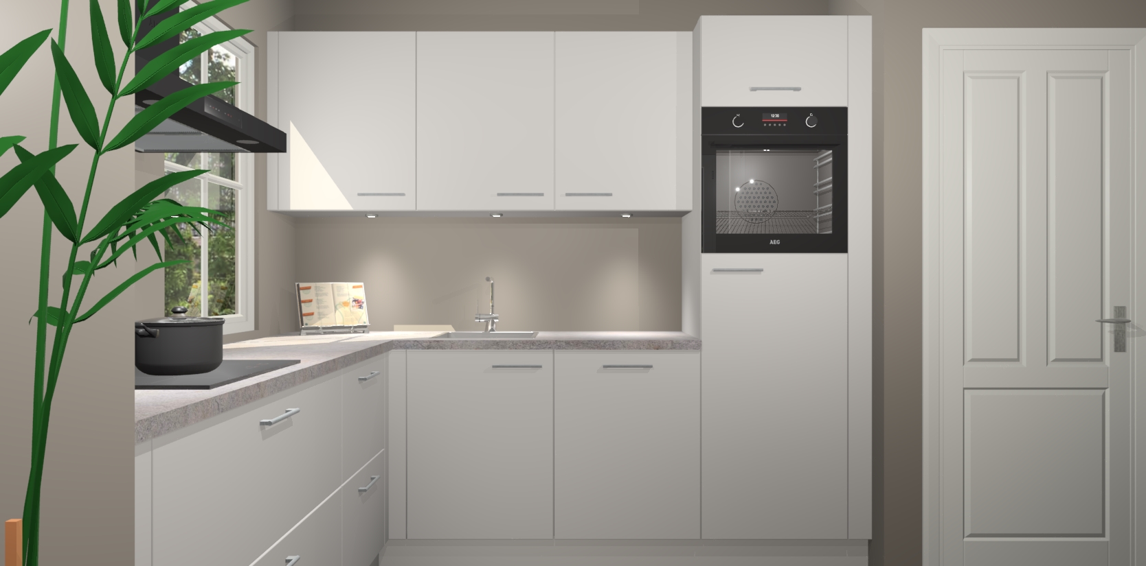 De zijdegrijze keuken Leeds bevat vijf essentiële inbouwapparaten - een oven, inductiekookplaat, afzuigkap, vaatwasser en koelkast - zodat u er na levering meteen in kunt. Voor de slimme kopers die weten dat apparaten vaak het verschil kunnen maken tussen functioneel en luxueus, bieden we eenvoudige upgradeopties naar AEG, van oven naar combimagnetron na bestelling of naar een kookplaat met geïntrigeerde afzuiging. En met onze vaste lage prijs en snelle levering binnen zeven weken vanaf de orderbevestiging hoeft u zich geen zorgen te maken over verborgen kosten of lange levertijden die uw droomkeuken kunnen vertragen.
