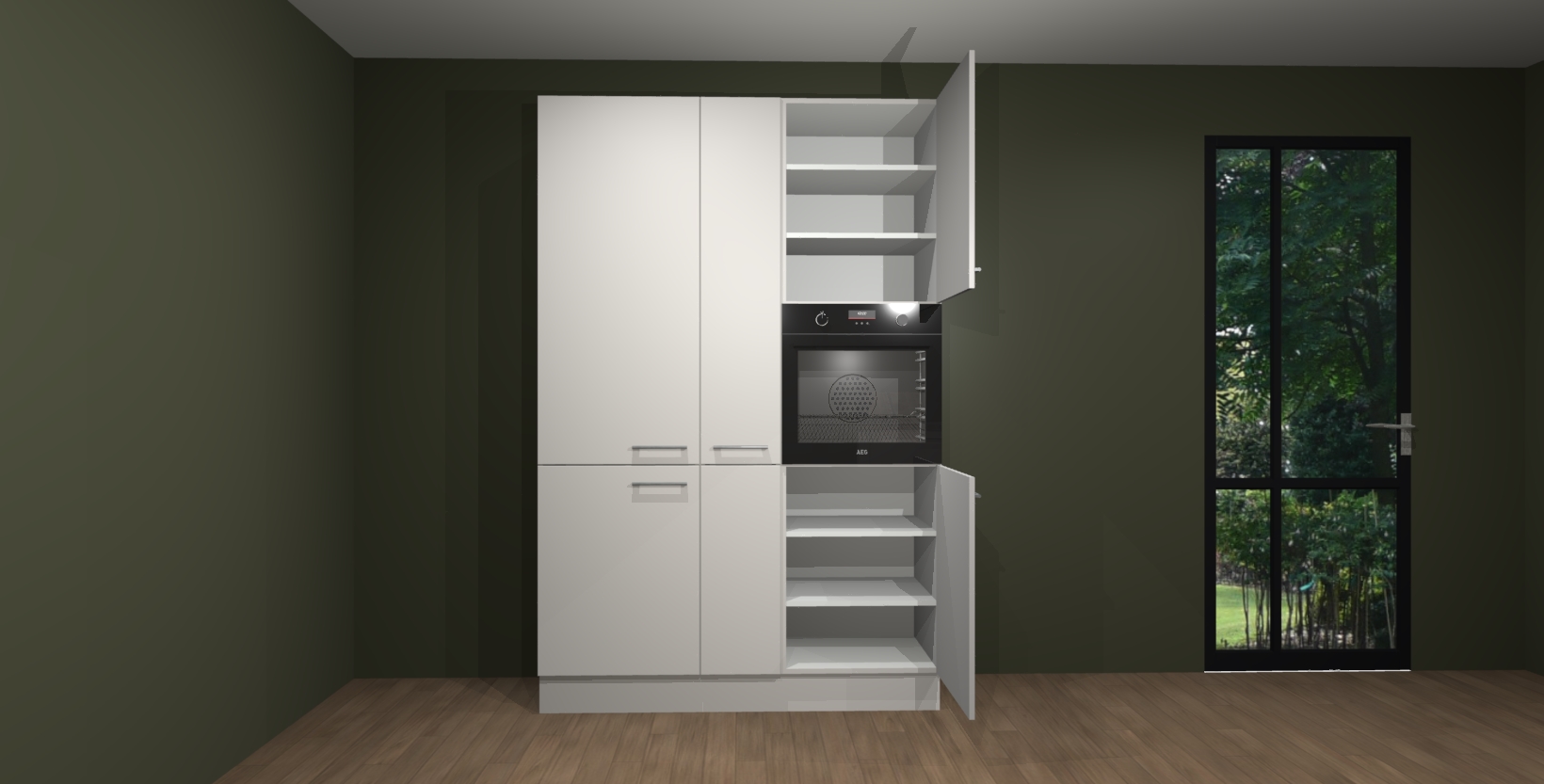 Met een modern, tijdloos design en ruime opslagruimte, zult u zich in no-time thuis voelen in uw nieuwe keuken. Uw leven wordt eenvoudiger met de soft-close deuren die voor het ultieme stille comfort zorgen - geen geluid dat u stoort terwijl u kookt. Ook is de keuken voorzien van 5 ingebouwde apparaten: een oven, inductie kookplaat, afzuigkap, vaatwasser en koelkast. Deze kunnen gemakkelijk na bestelling worden bijgewerkt naar AEG - waardoor uw luxe ervaring compleet is.