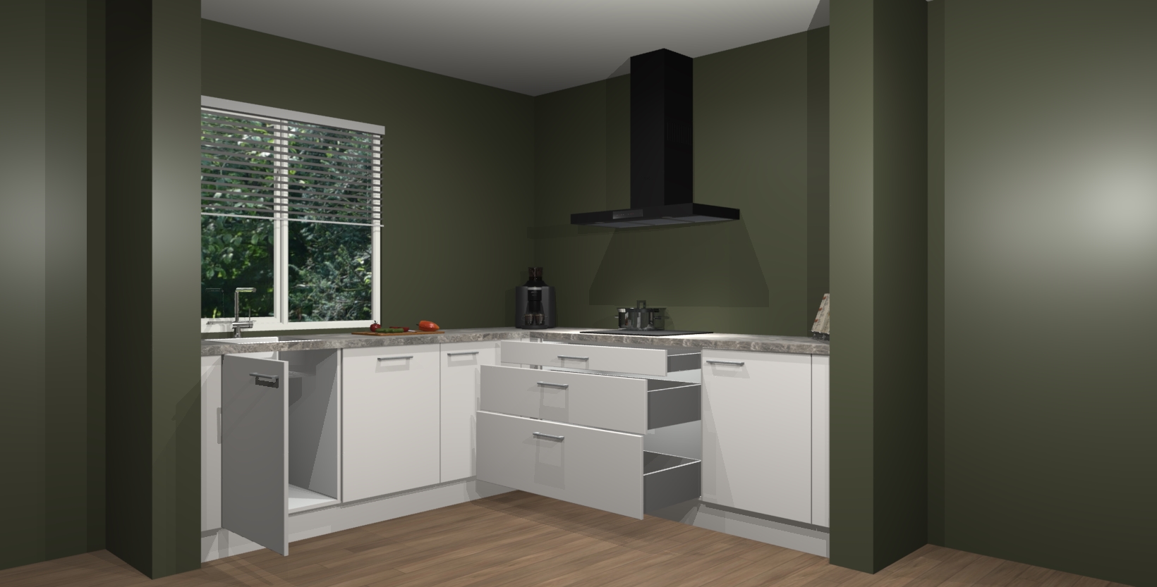 - Bij een hoekwerkblad zijn de hoeken in gevreesd en op maat gemaakt
