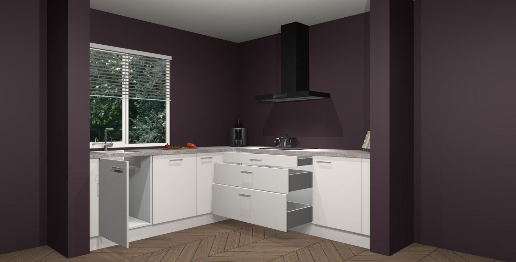 Hoekonderkast met le-mans systeem