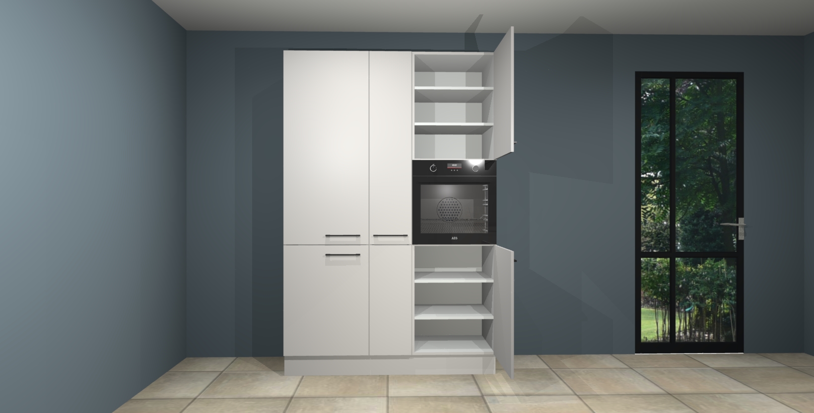 Met een modern, tijdloos design en ruime opslagruimte, zult u zich in no-time thuis voelen in uw nieuwe keuken. Uw leven wordt eenvoudiger met de soft-close deuren die voor het ultieme stille comfort zorgen - geen geluid dat u stoort terwijl u kookt. Ook is de keuken voorzien van 5 ingebouwde apparaten: een oven, inductie kookplaat, afzuigkap, vaatwasser en koelkast. Deze kunnen gemakkelijk na bestelling worden bijgewerkt naar AEG - waardoor uw luxe ervaring compleet is.
