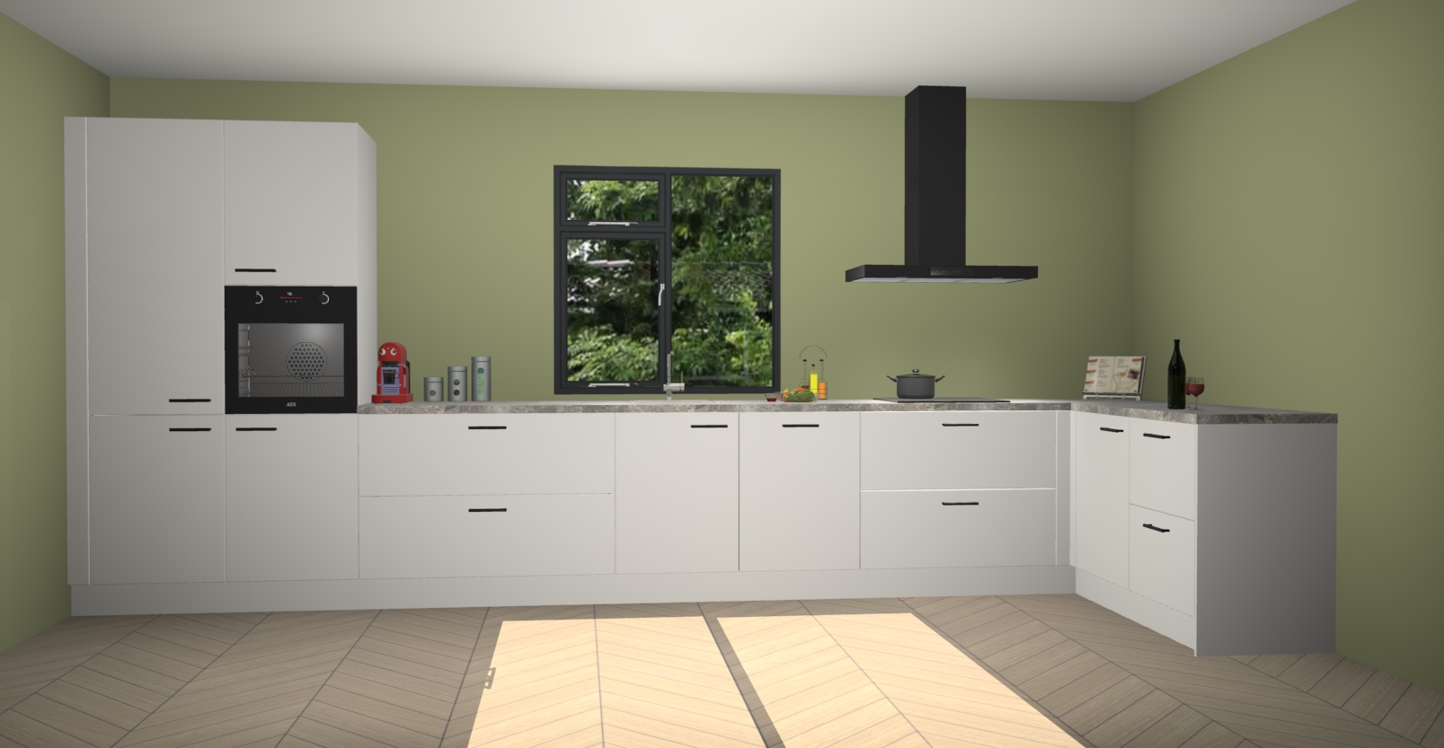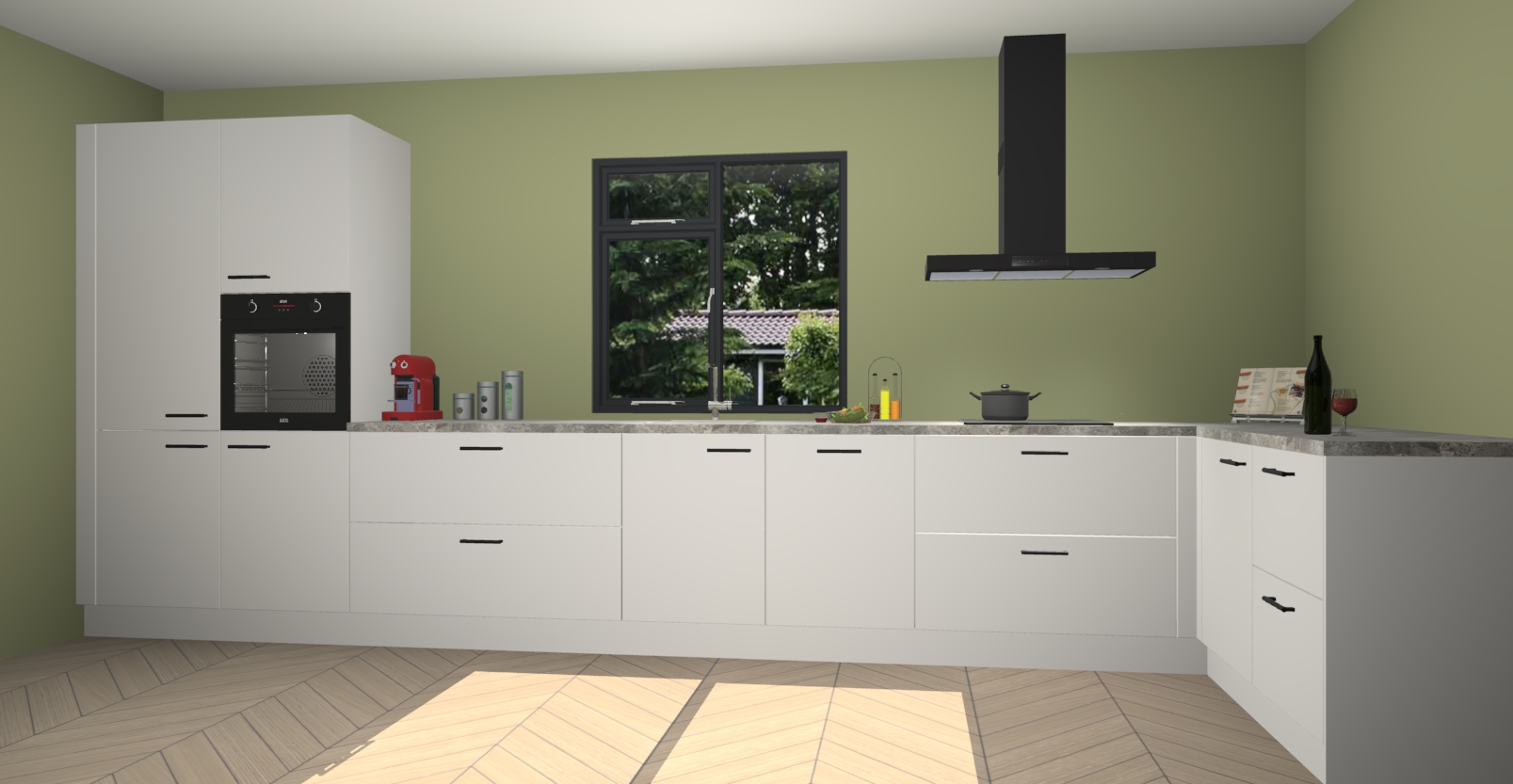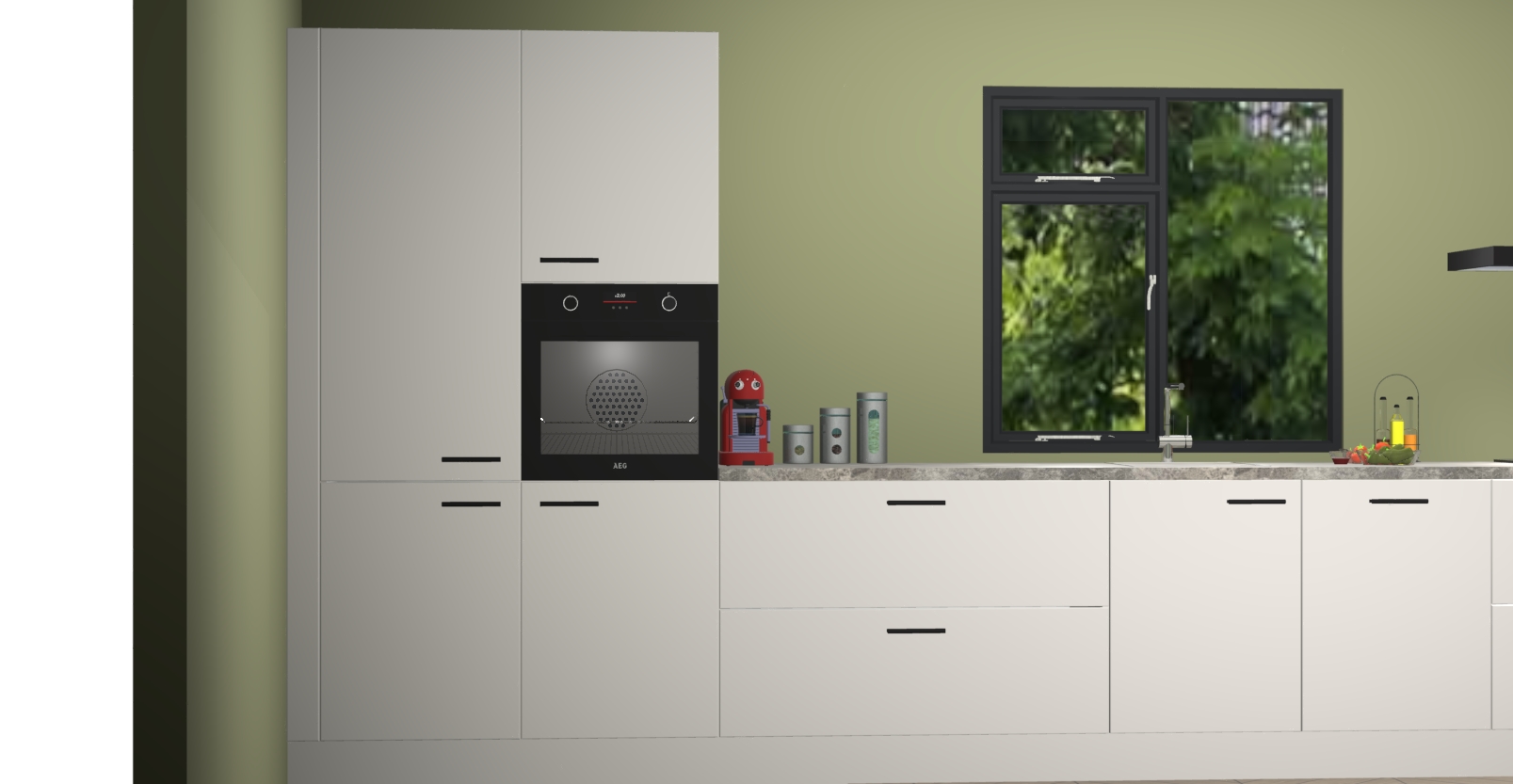 De Zijdegrijze keuken Lille wordt geleverd met vijf inbouwapparaten - een oven, inductiekookplaat, afzuigkap, vaatwasser en koelkast. Maar dat is nog niet alles! Na bestelling kunnen deze apparaten eenvoudig worden geüpgraded naar premium AEG-apparatuur. Bovendien is er zelfs de optie om de oven te vervangen door een combimagnetron of uw inductiekookplaat te vervangen door een kookplaat met geïntegreerde afzuiging.