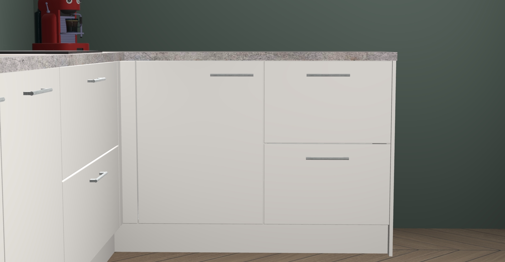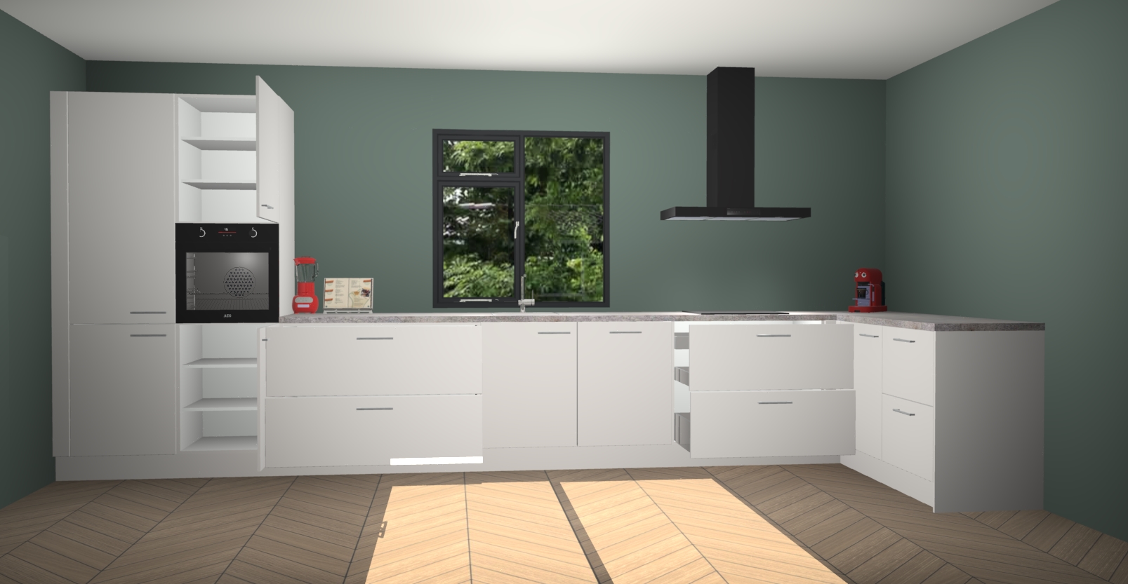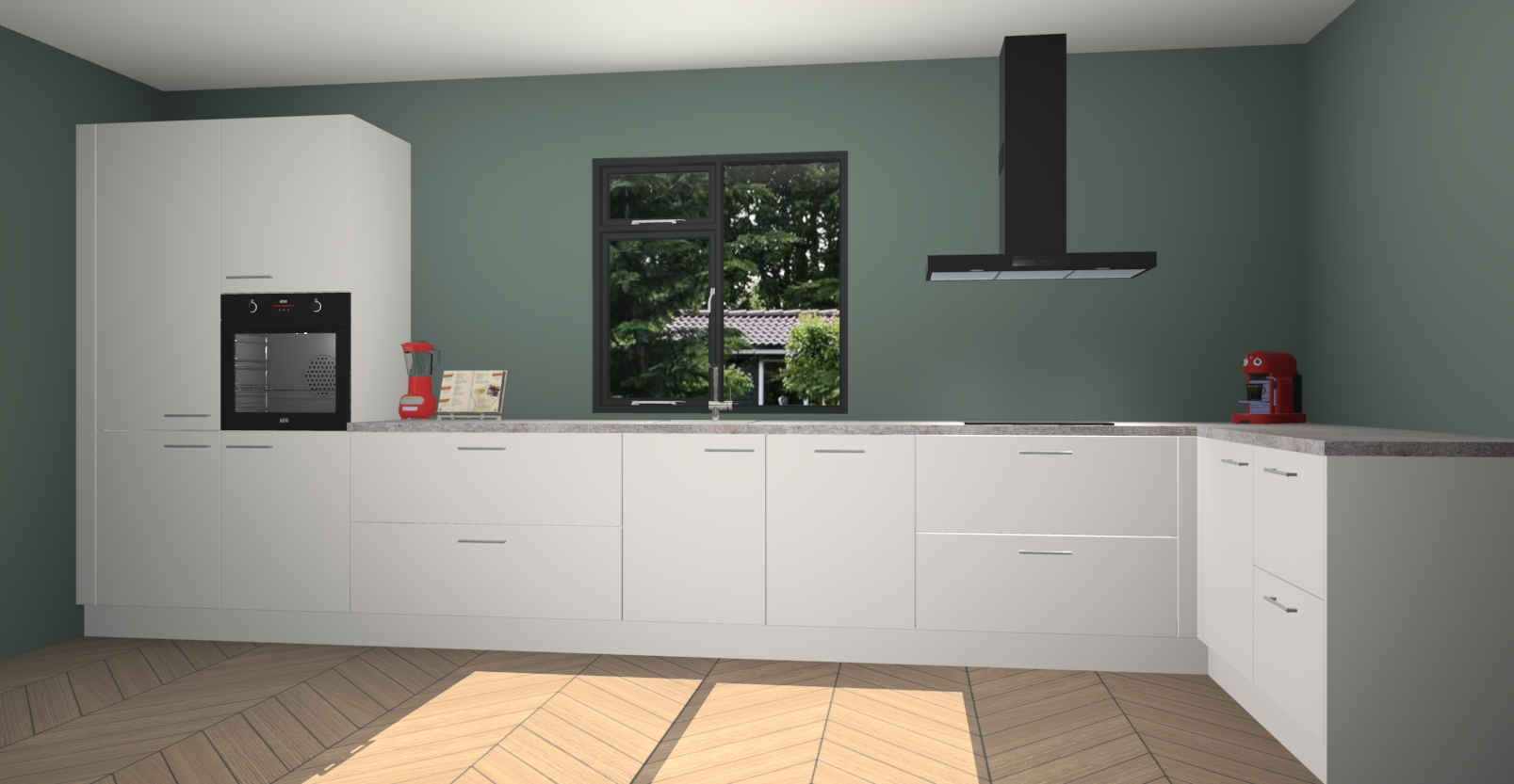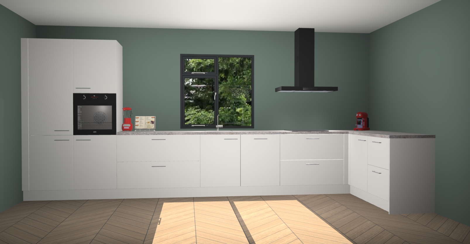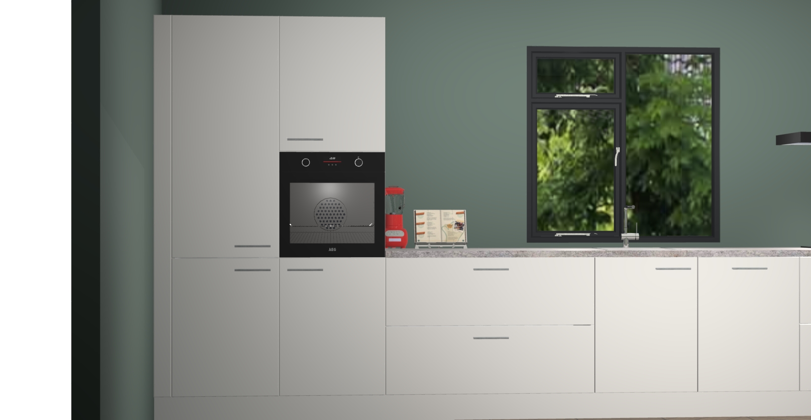 De Zijdegrijze keuken Lille wordt geleverd met vijf inbouwapparaten - een oven, inductiekookplaat, afzuigkap, vaatwasser en koelkast. Maar dat is nog niet alles! Na bestelling kunnen deze apparaten eenvoudig worden geüpgraded naar premium AEG-apparatuur. Bovendien is er zelfs de optie om de oven te vervangen door een combimagnetron of uw inductiekookplaat te vervangen door een kookplaat met geïntegreerde afzuiging.