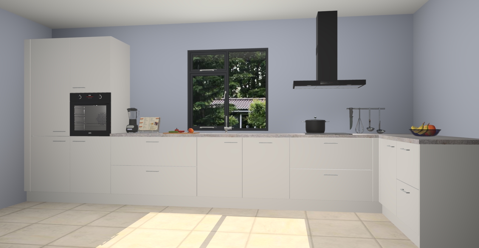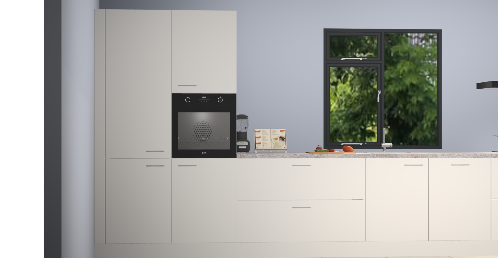 De Zijdegrijze keuken Lille wordt geleverd met vijf inbouwapparaten - een oven, inductiekookplaat, afzuigkap, vaatwasser en koelkast. Maar dat is nog niet alles! Na bestelling kunnen deze apparaten eenvoudig worden geüpgraded naar premium AEG-apparatuur. Bovendien is er zelfs de optie om de oven te vervangen door een combimagnetron of uw inductiekookplaat te vervangen door een kookplaat met geïntegreerde afzuiging.