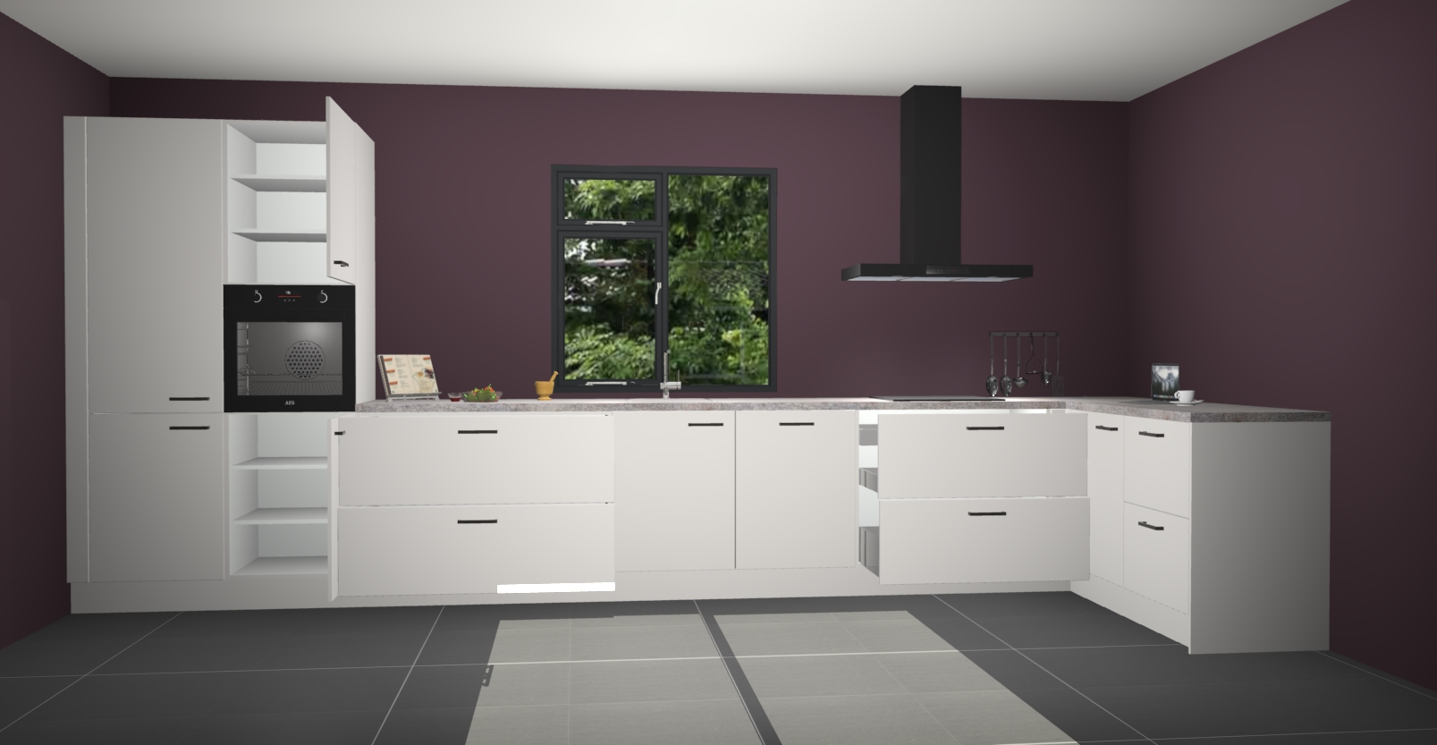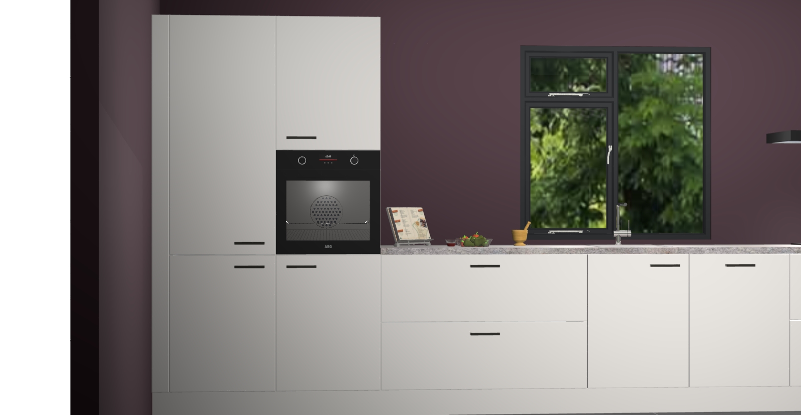 De Zijdegrijze keuken Lille wordt geleverd met vijf inbouwapparaten - een oven, inductiekookplaat, afzuigkap, vaatwasser en koelkast. Maar dat is nog niet alles! Na bestelling kunnen deze apparaten eenvoudig worden geüpgraded naar premium AEG-apparatuur. Bovendien is er zelfs de optie om de oven te vervangen door een combimagnetron of uw inductiekookplaat te vervangen door een kookplaat met geïntegreerde afzuiging.