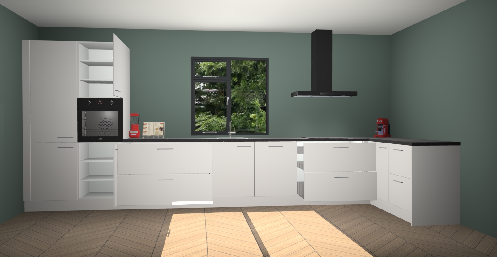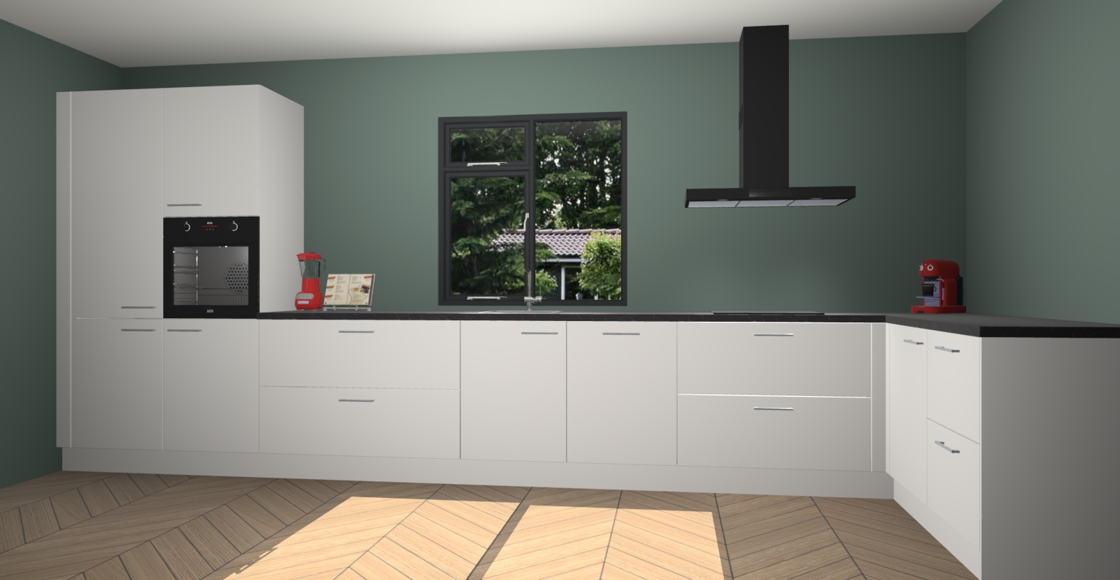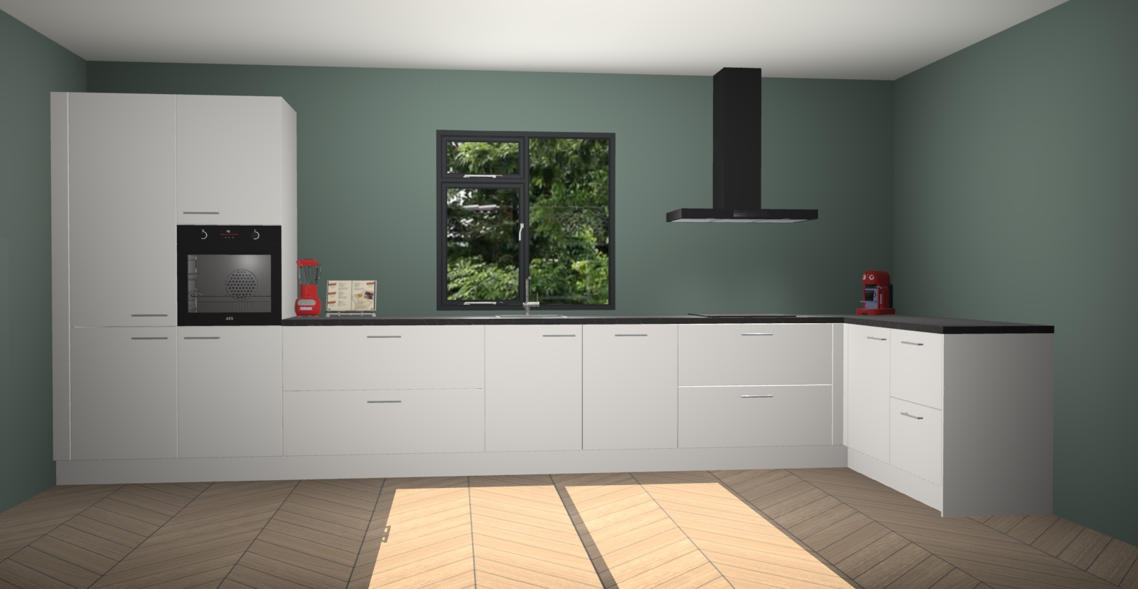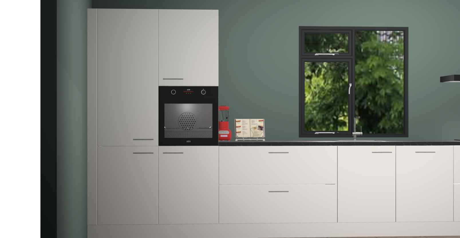 De Zijdegrijze keuken Lille wordt geleverd met vijf inbouwapparaten - een oven, inductiekookplaat, afzuigkap, vaatwasser en koelkast. Maar dat is nog niet alles! Na bestelling kunnen deze apparaten eenvoudig worden geüpgraded naar premium AEG-apparatuur. Bovendien is er zelfs de optie om de oven te vervangen door een combimagnetron of uw inductiekookplaat te vervangen door een kookplaat met geïntegreerde afzuiging.