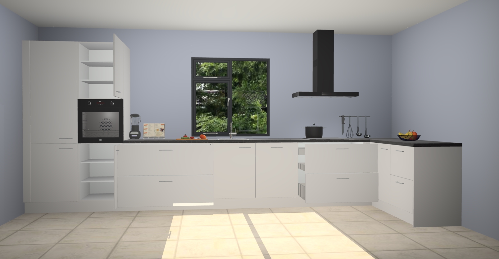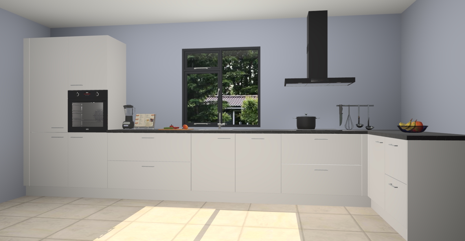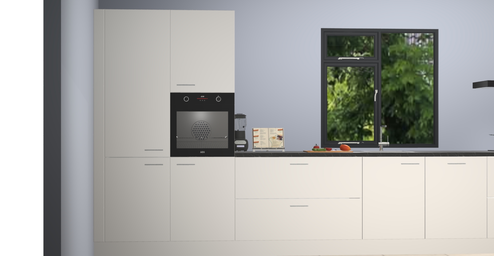 De Zijdegrijze keuken Lille wordt geleverd met vijf inbouwapparaten - een oven, inductiekookplaat, afzuigkap, vaatwasser en koelkast. Maar dat is nog niet alles! Na bestelling kunnen deze apparaten eenvoudig worden geüpgraded naar premium AEG-apparatuur. Bovendien is er zelfs de optie om de oven te vervangen door een combimagnetron of uw inductiekookplaat te vervangen door een kookplaat met geïntegreerde afzuiging.