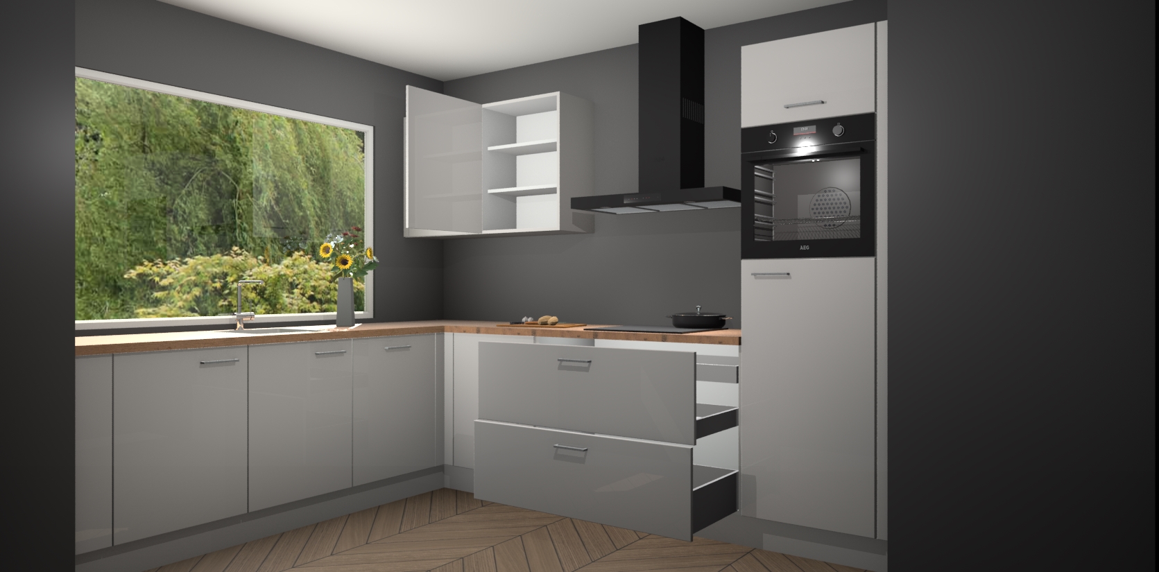 Bent u op zoek naar een onberispelijk keukenontwerp dat Duitse precisie en uitmuntende architectuur ademt? Zoek niet verder - de zijdegrijze hoogglans keuken Limonos biedt de perfecte moderne mix van stijl en functionaliteit.