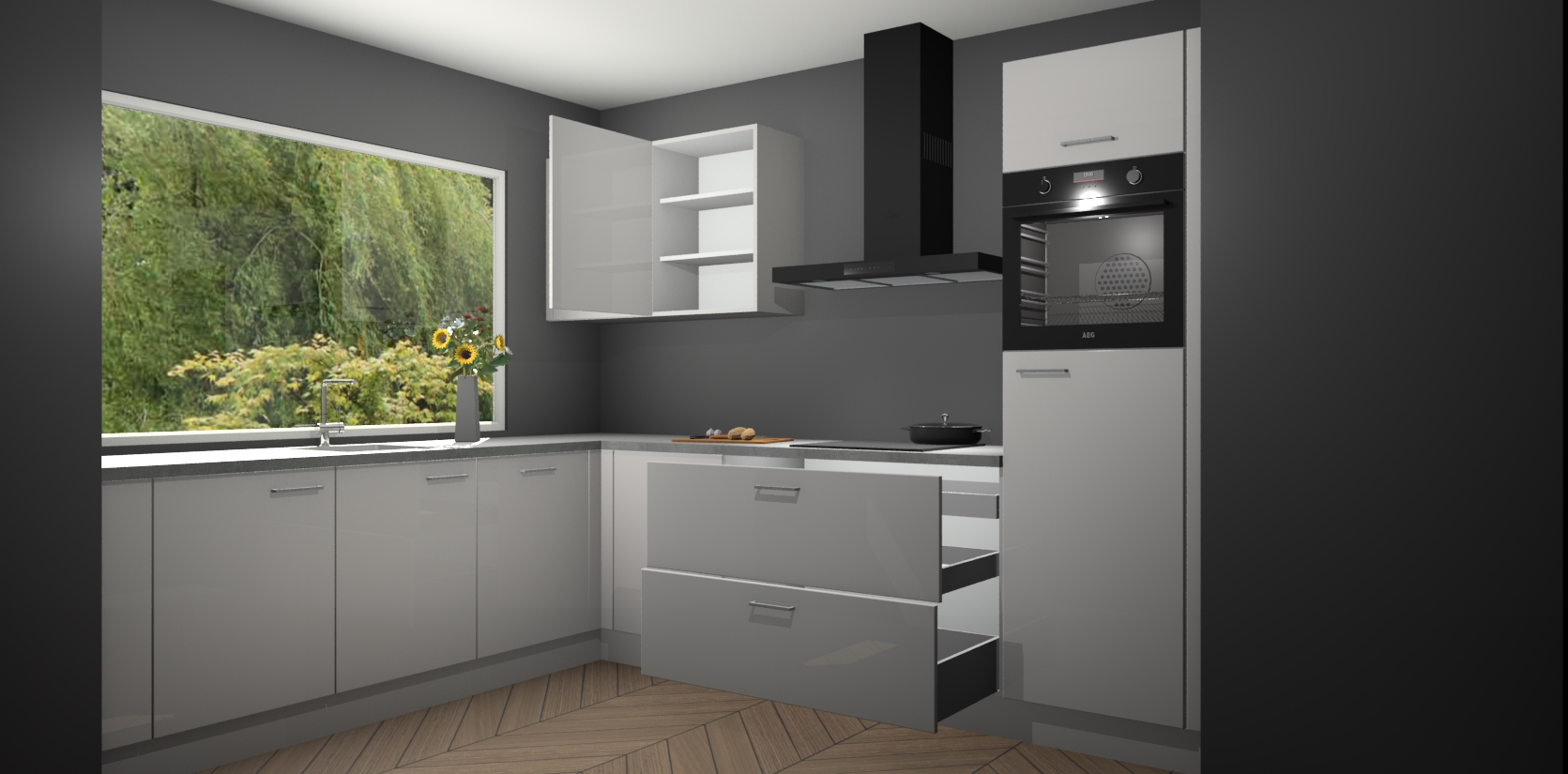 Bent u op zoek naar een onberispelijk keukenontwerp dat Duitse precisie en uitmuntende architectuur ademt? Zoek niet verder - de Zijdegrijze hoogglans keuken Limonos biedt de perfecte moderne mix van stijl en functionaliteit.