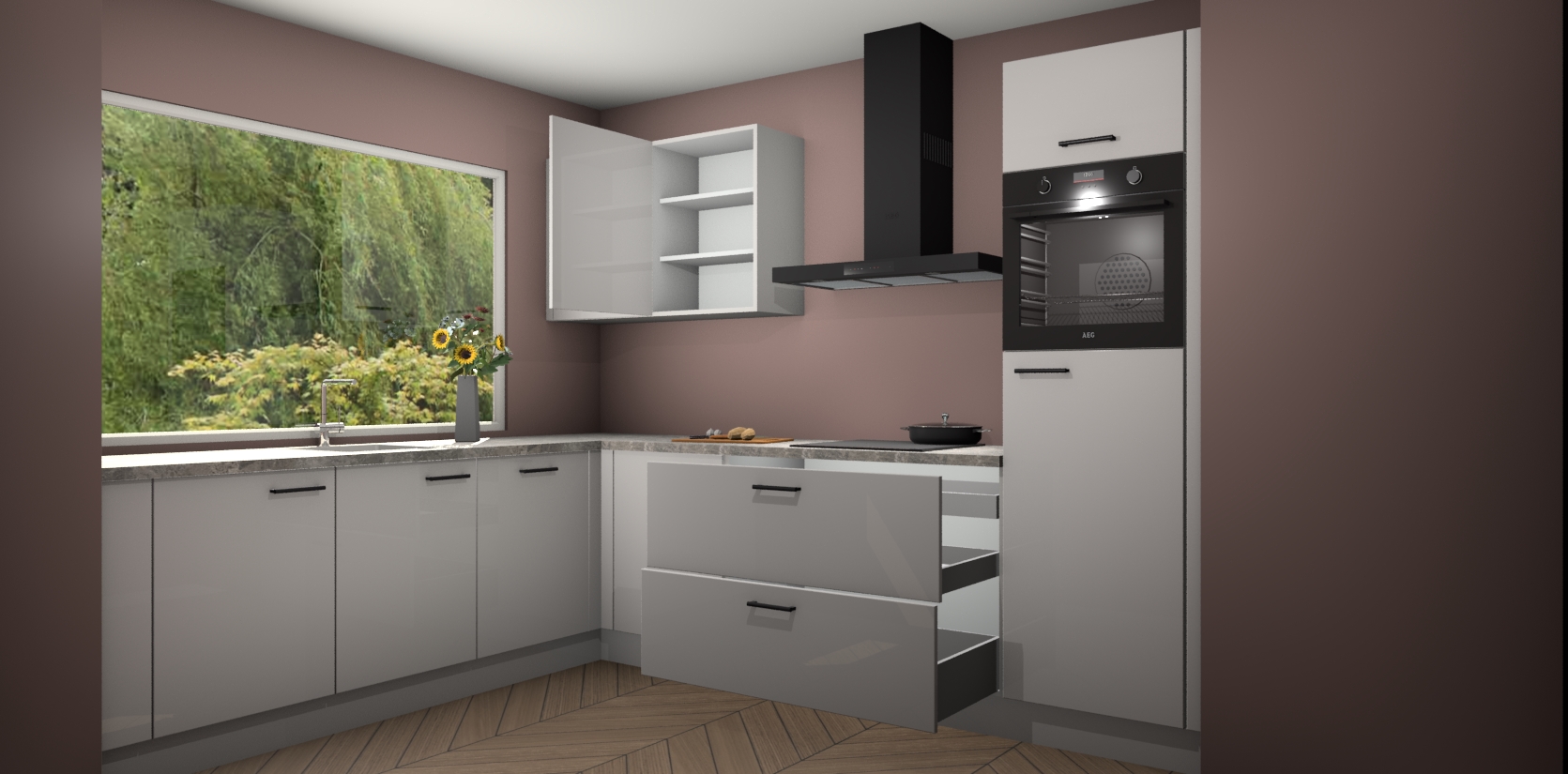 Bent u op zoek naar een onberispelijk keukenontwerp dat Duitse precisie en uitmuntende architectuur ademt? Zoek niet verder - de zijdegrijze hoogglans keuken Limonos biedt de perfecte moderne mix van stijl en functionaliteit.