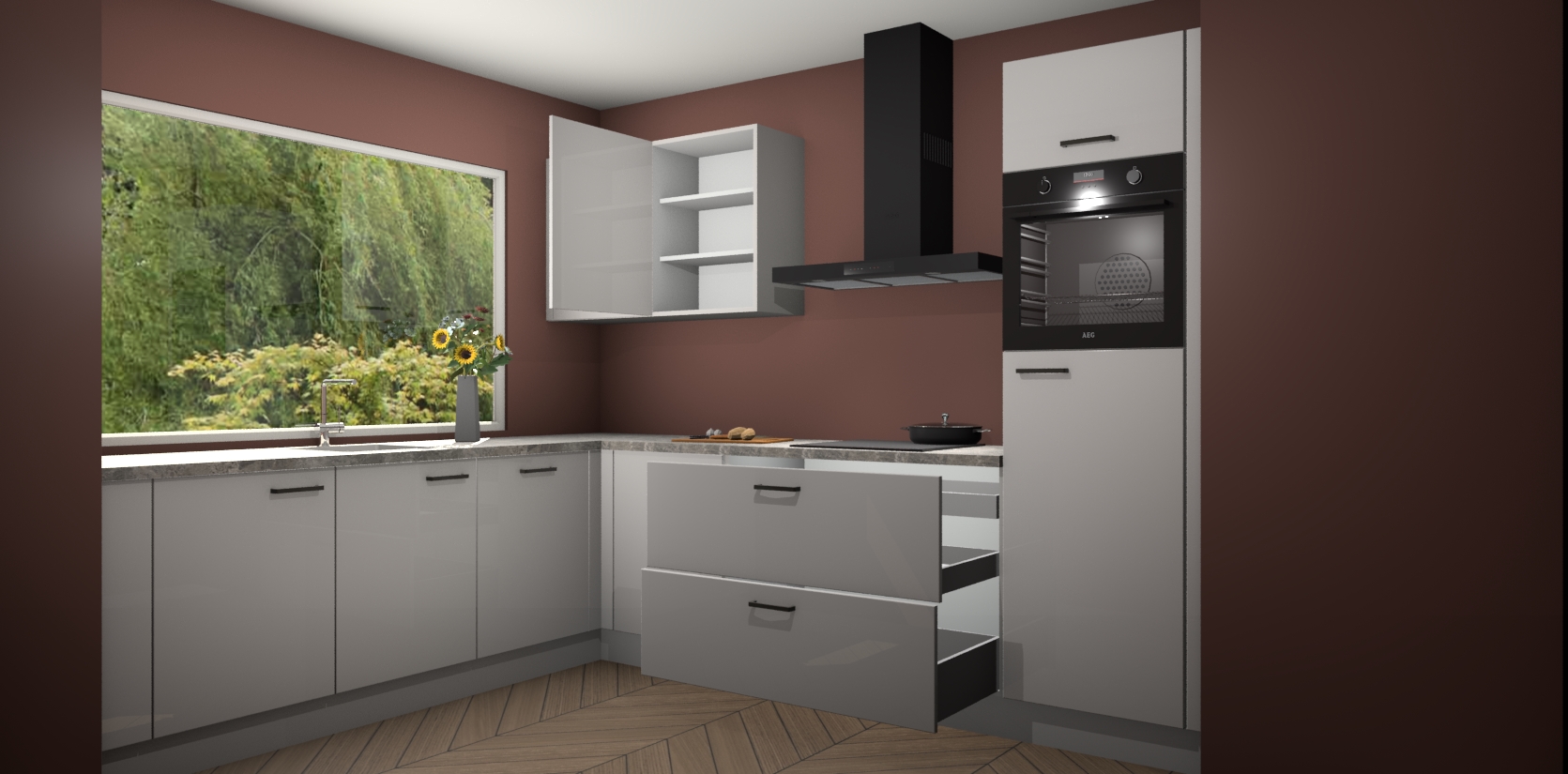 Bent u op zoek naar een onberispelijk keukenontwerp dat Duitse precisie en uitmuntende architectuur ademt? Zoek niet verder - de zijdegrijze hoogglans keuken Limonos biedt de perfecte moderne mix van stijl en functionaliteit.
