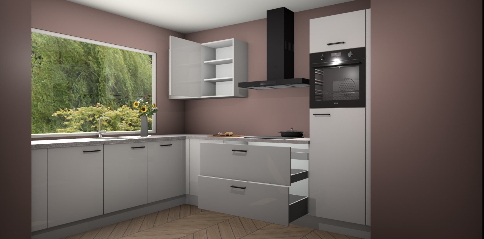 Bent u op zoek naar een onberispelijk keukenontwerp dat Duitse precisie en uitmuntende architectuur ademt? Zoek niet verder - de zijdegrijze hoogglans keuken Limonos biedt de perfecte moderne mix van stijl en functionaliteit.