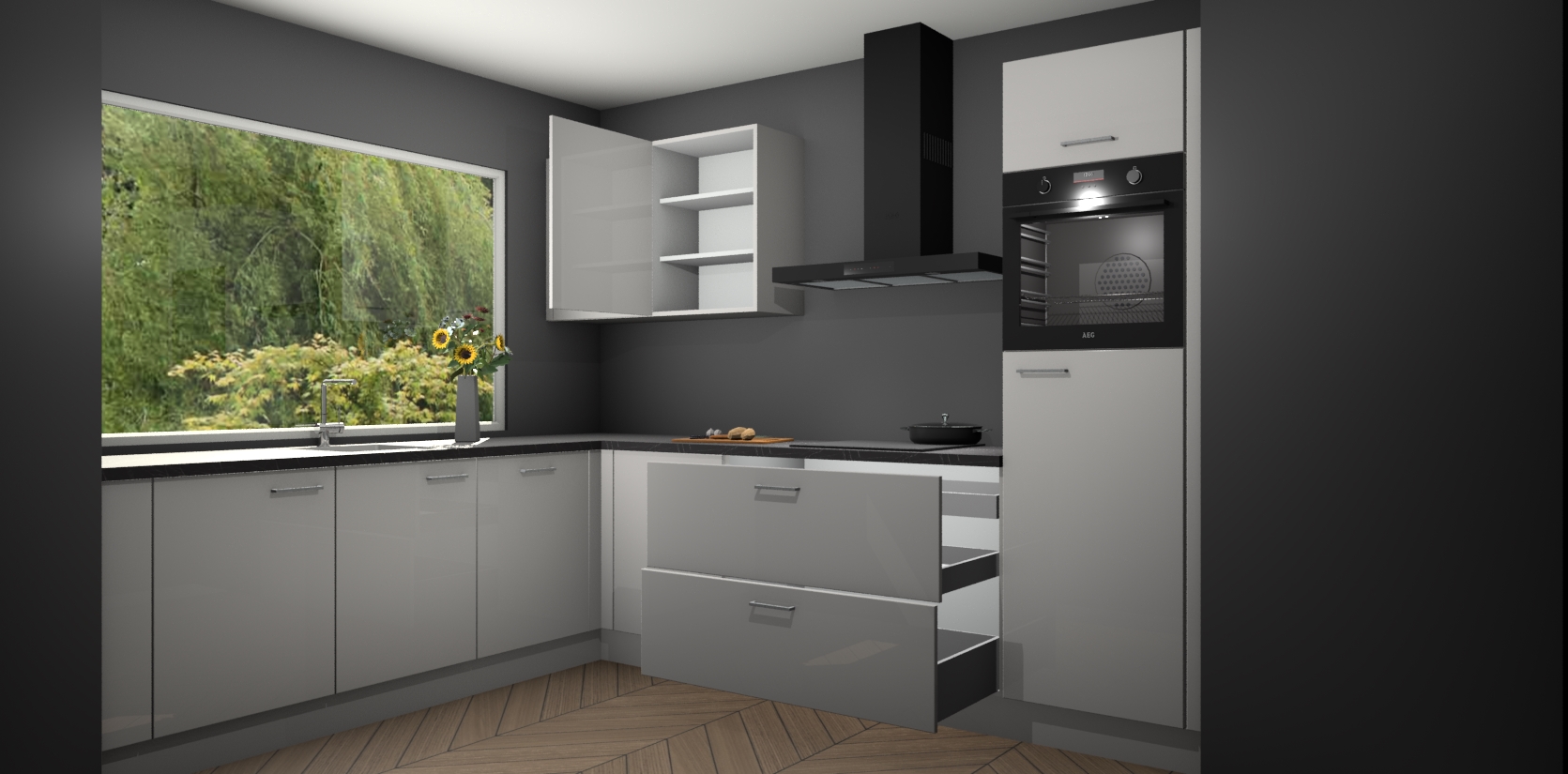 Bent u op zoek naar een onberispelijk keukenontwerp dat Duitse precisie en uitmuntende architectuur ademt? Zoek niet verder - de zijdegrijze hoogglans keuken Limonos biedt de perfecte moderne mix van stijl en functionaliteit.