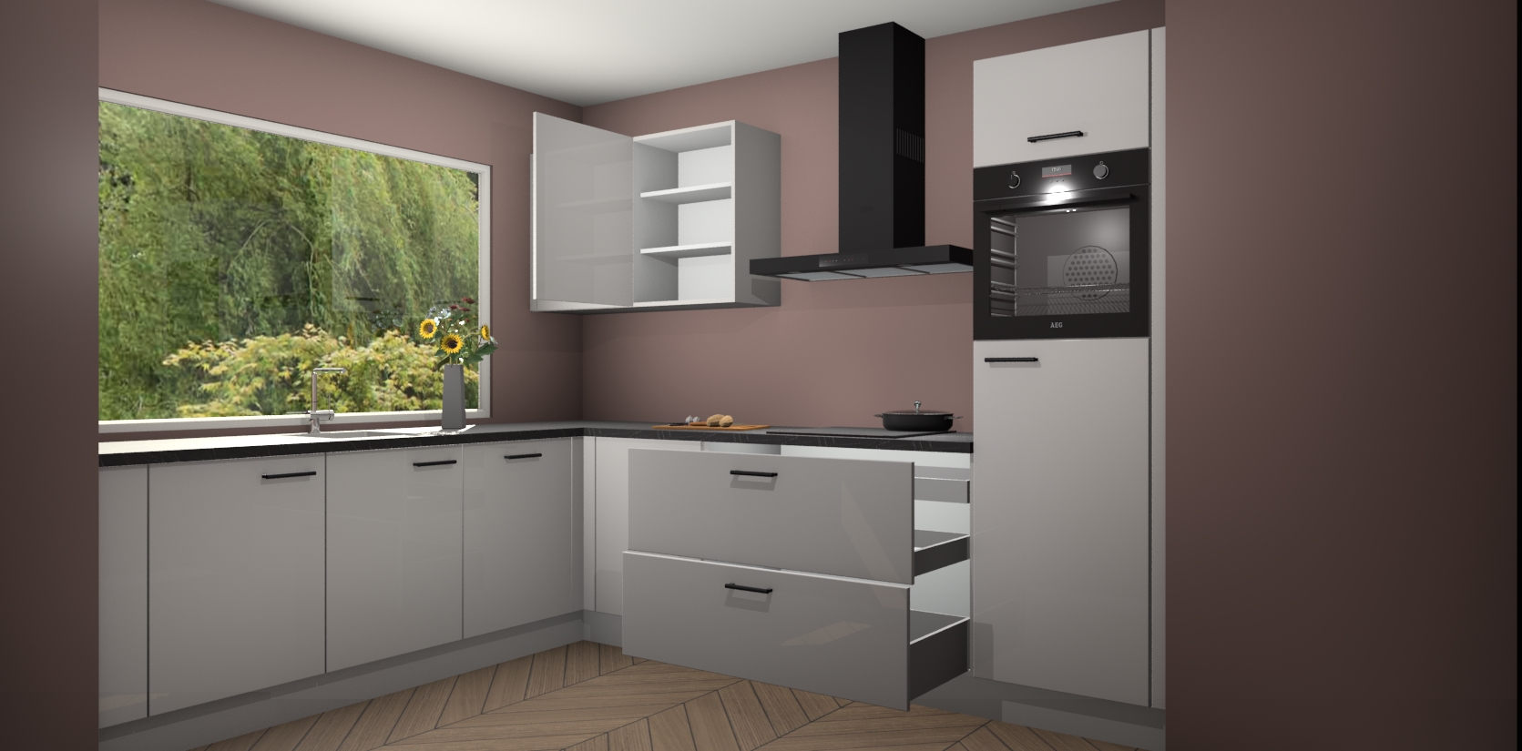 Bent u op zoek naar een onberispelijk keukenontwerp dat Duitse precisie en uitmuntende architectuur ademt? Zoek niet verder - de zijdegrijze hoogglans keuken Limonos biedt de perfecte moderne mix van stijl en functionaliteit.