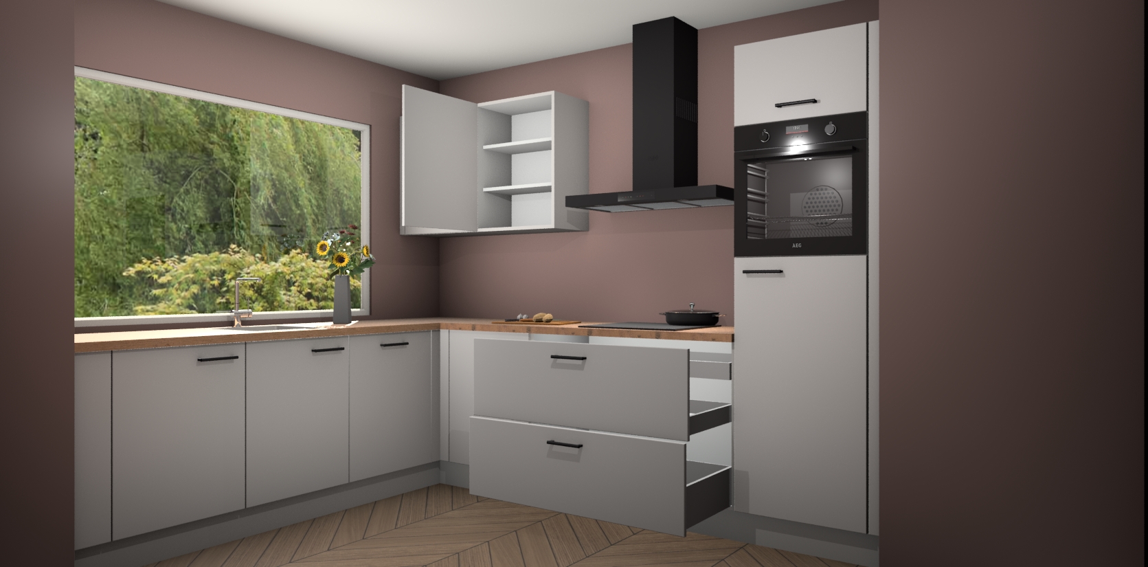 Bent u op zoek naar een onberispelijk keukenontwerp dat Duitse precisie en uitmuntende architectuur ademt? Zoek niet verder - de zijdegrijze keuken Limonos biedt de perfecte moderne mix van stijl en functionaliteit.