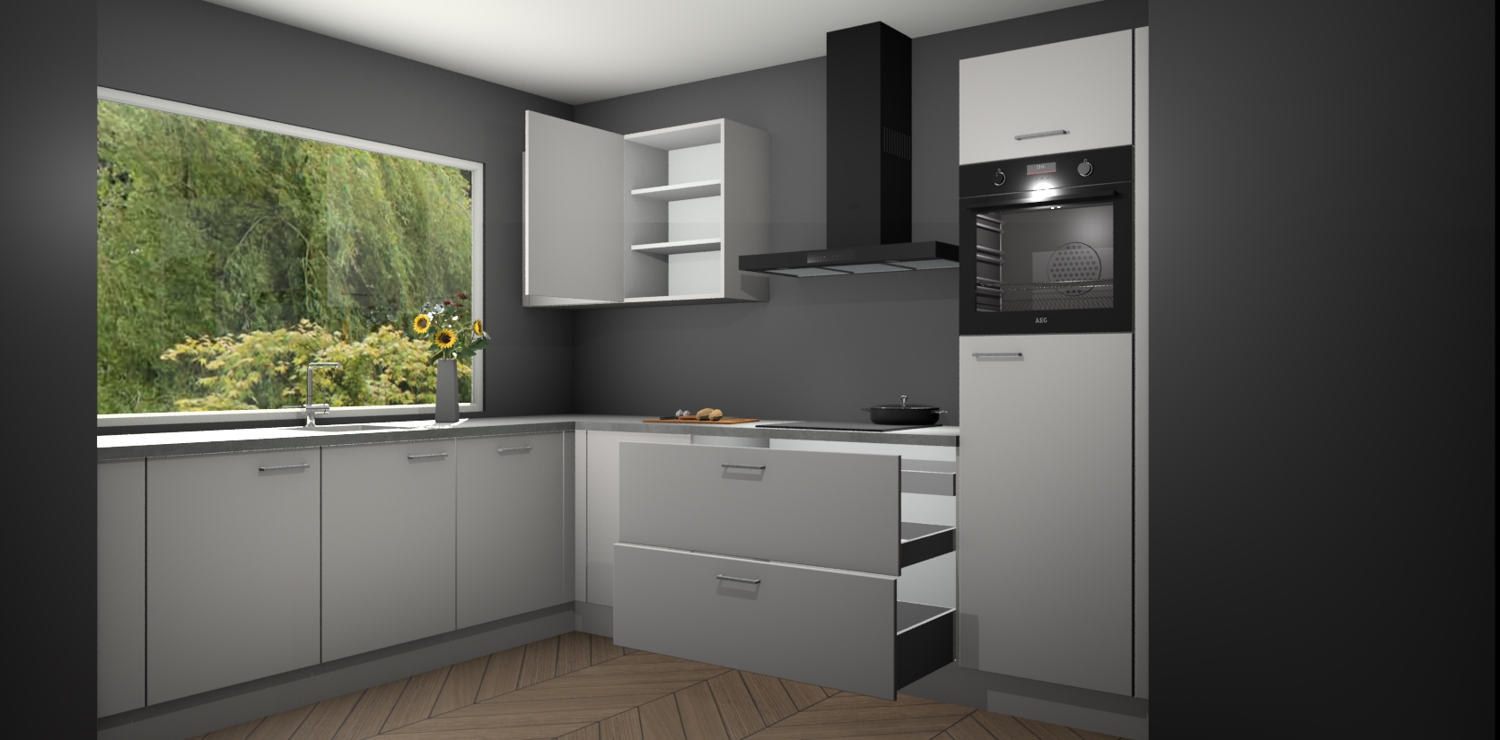 Bent u op zoek naar een onberispelijk keukenontwerp dat Duitse precisie en uitmuntende architectuur ademt? Zoek niet verder - de zijdegrijze keuken Limonos biedt de perfecte moderne mix van stijl en functionaliteit.