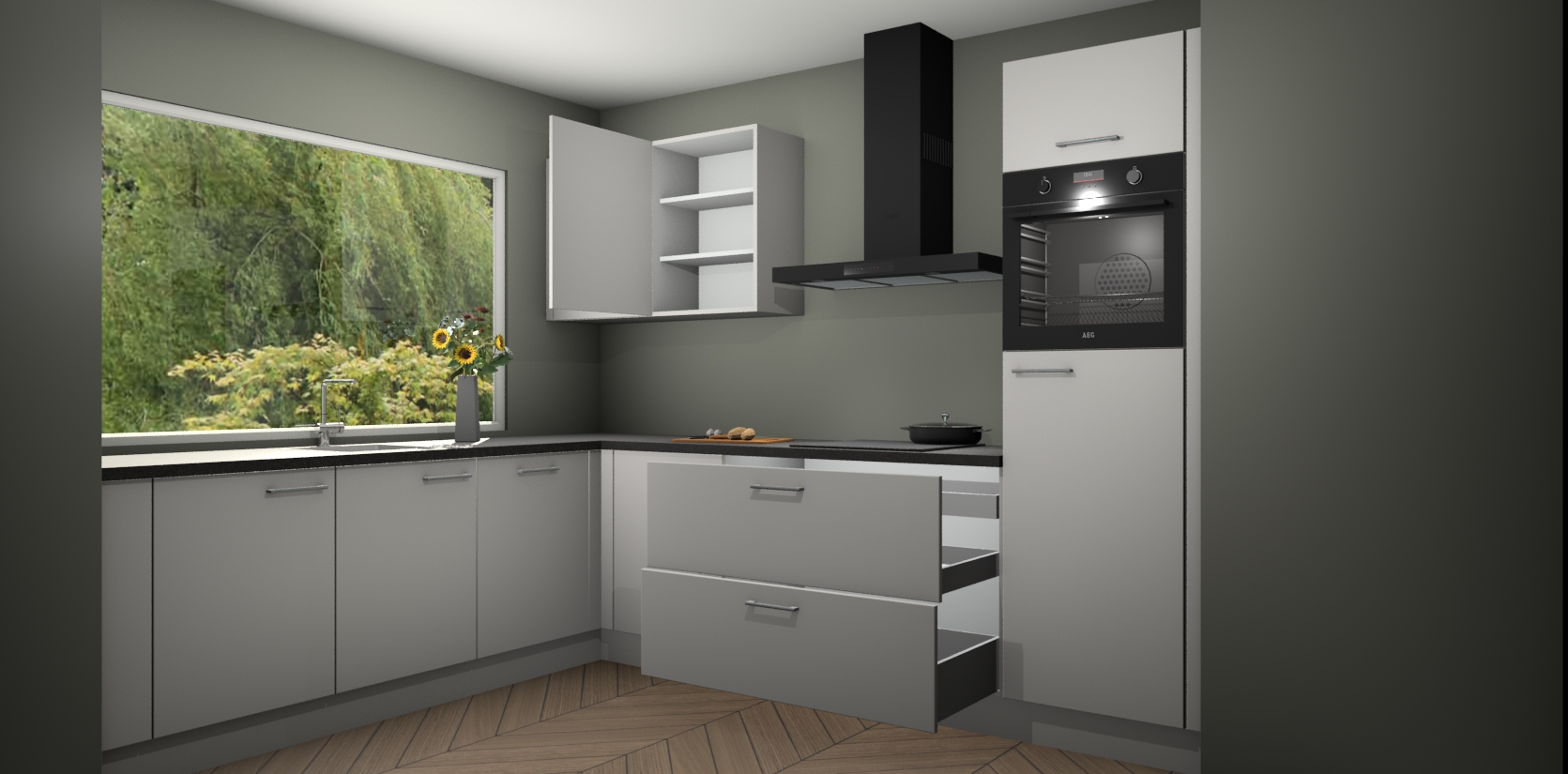 Bent u op zoek naar een onberispelijk keukenontwerp dat Duitse precisie en uitmuntende architectuur ademt? Zoek niet verder - de zijdegrijze keuken Limonos biedt de perfecte moderne mix van stijl en functionaliteit.