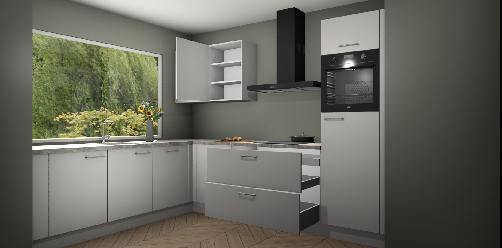 Bent u op zoek naar een onberispelijk keukenontwerp dat Duitse precisie en uitmuntende architectuur ademt? Zoek niet verder - de zijdegrijze keuken Limonos biedt de perfecte moderne mix van stijl en functionaliteit.