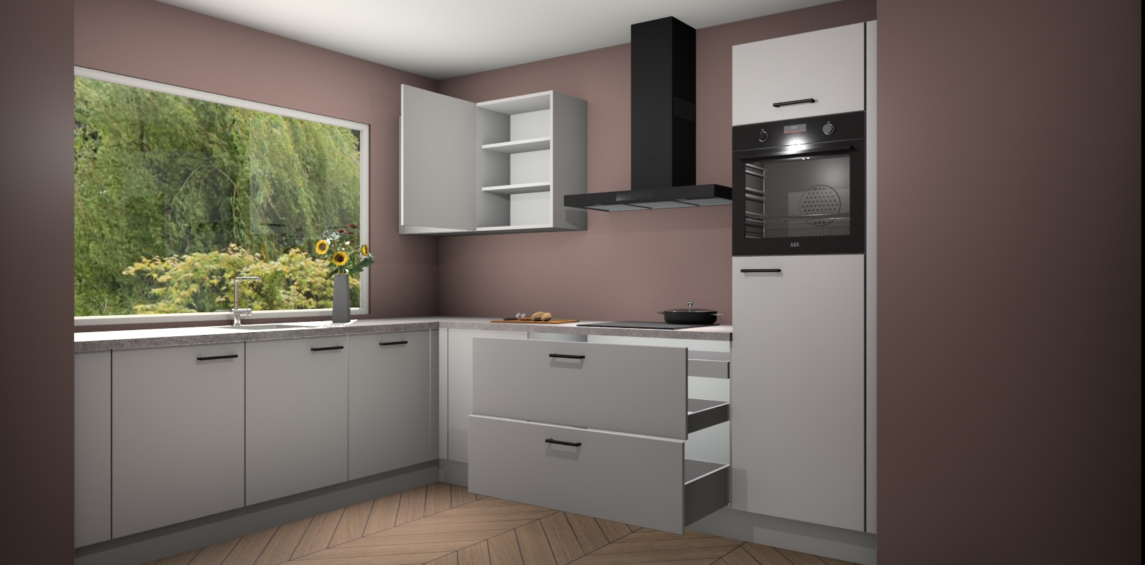 Bent u op zoek naar een onberispelijk keukenontwerp dat Duitse precisie en uitmuntende architectuur ademt? Zoek niet verder - de zijdegrijze keuken Limonos biedt de perfecte moderne mix van stijl en functionaliteit.