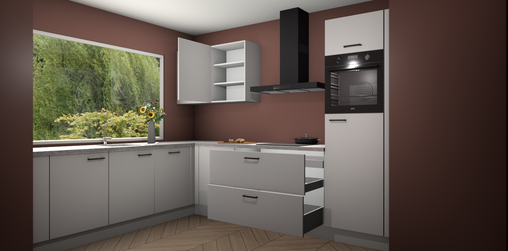Bent u op zoek naar een onberispelijk keukenontwerp dat Duitse precisie en uitmuntende architectuur ademt? Zoek niet verder - de zijdegrijze keuken Limonos biedt de perfecte moderne mix van stijl en functionaliteit.
