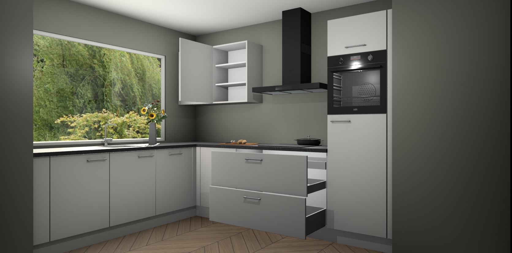 Bent u op zoek naar een onberispelijk keukenontwerp dat Duitse precisie en uitmuntende architectuur ademt? Zoek niet verder - de zijdegrijze keuken Limonos biedt de perfecte moderne mix van stijl en functionaliteit.