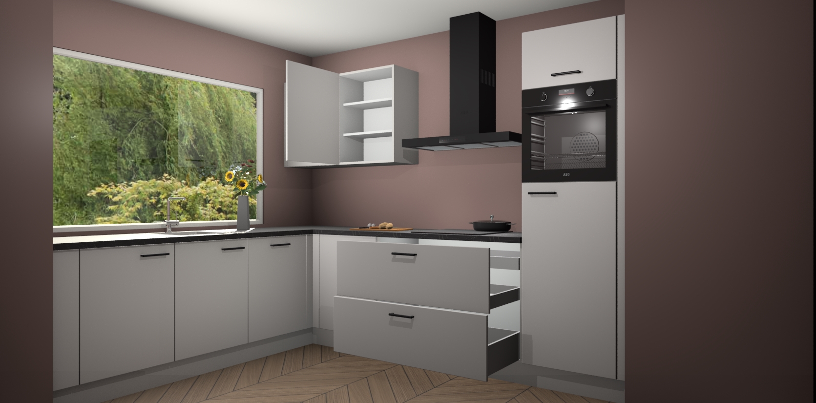 Bent u op zoek naar een onberispelijk keukenontwerp dat Duitse precisie en uitmuntende architectuur ademt? Zoek niet verder - de zijdegrijze keuken Limonos biedt de perfecte moderne mix van stijl en functionaliteit.
