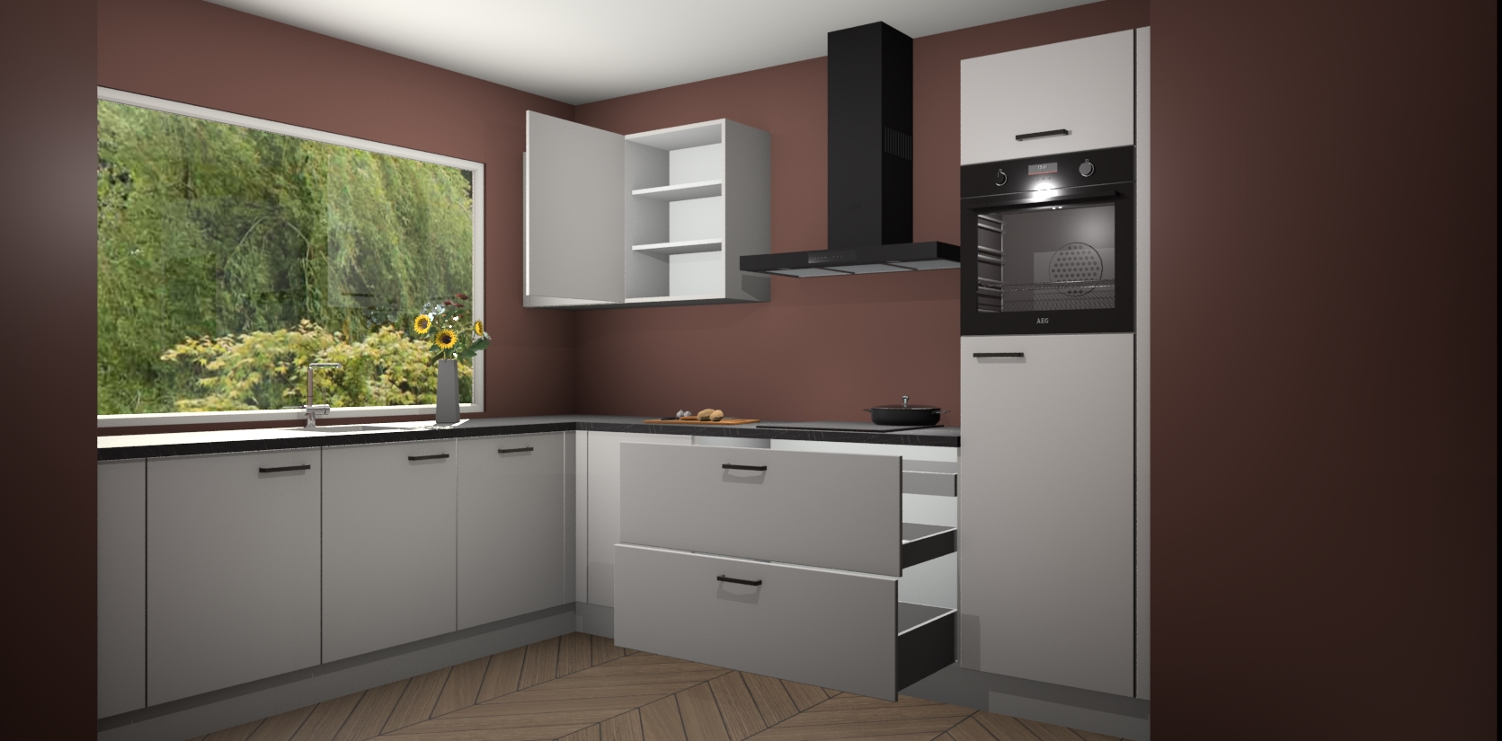 Bent u op zoek naar een onberispelijk keukenontwerp dat Duitse precisie en uitmuntende architectuur ademt? Zoek niet verder - de zijdegrijze keuken Limonos biedt de perfecte moderne mix van stijl en functionaliteit.
